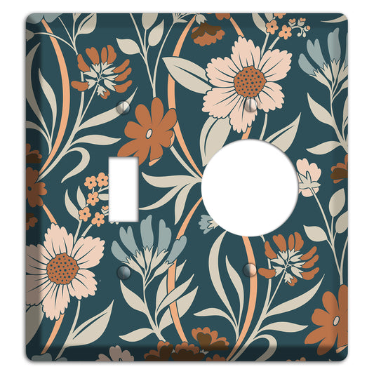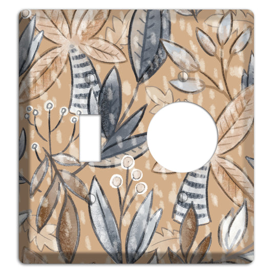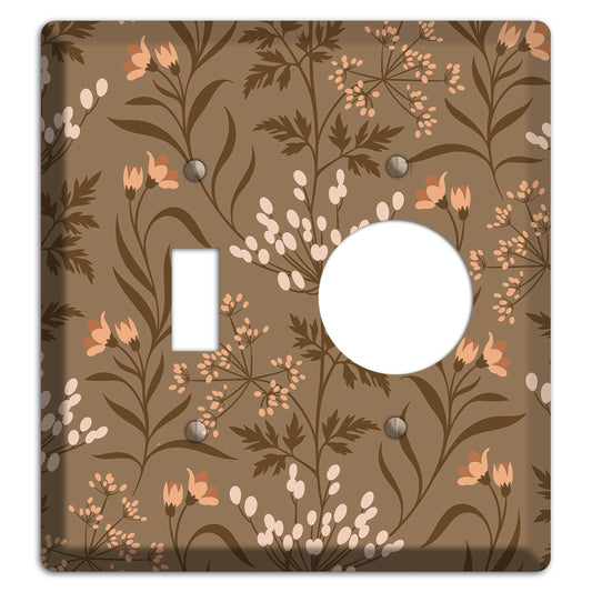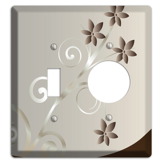 Grey Floral Swirl Sprig Toggle / Receptacle Wallplate