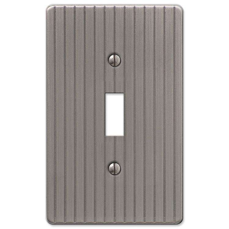 The Embossed Line collection in antique nickel offers simple contemporary style with a touch of class. The nickel plated metal plates are embossed with simple pinstripes, and is available in 11 different configurations.