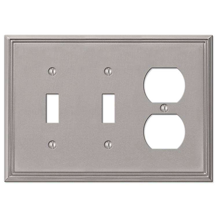 Metro Line Brushed Nickel 2 Toggle / Duplex Outlet