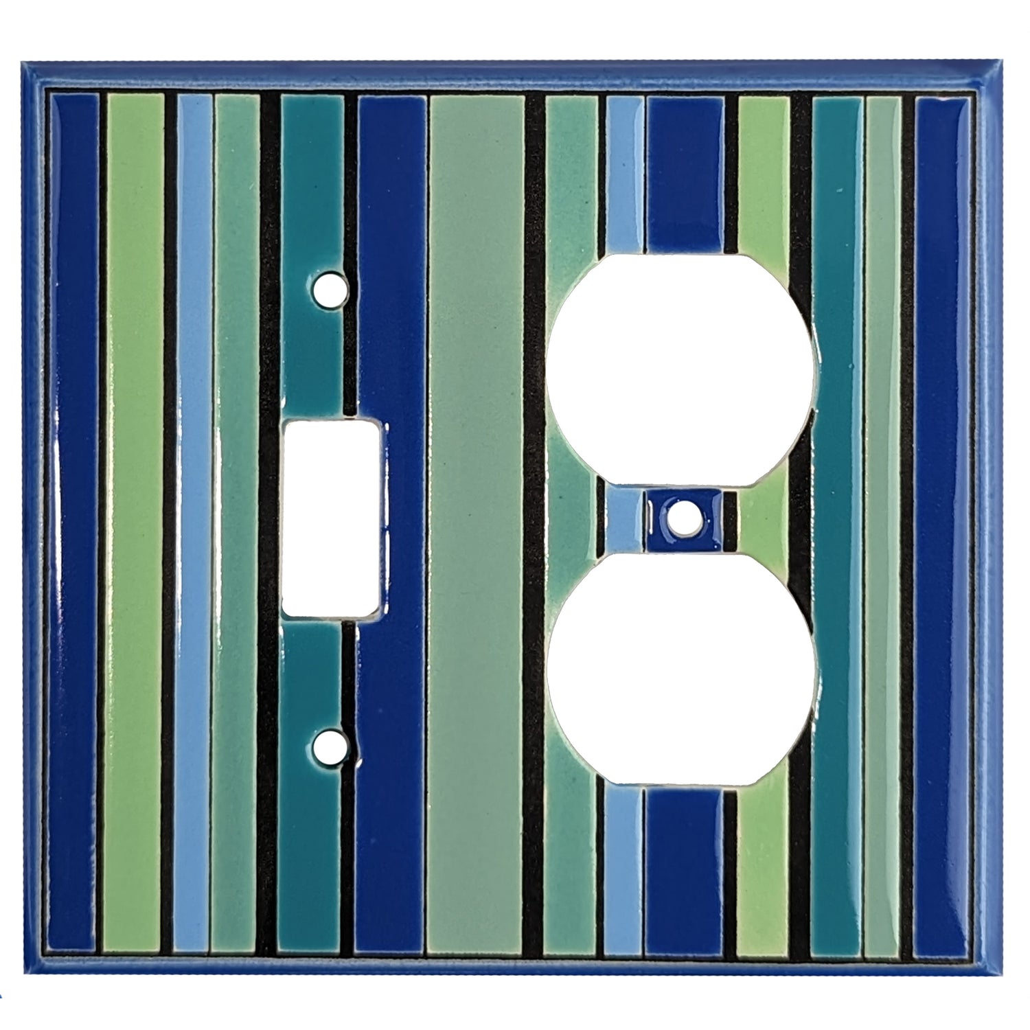 The Blue Stripes Cover Plates Toggle / Duplex Wallplateare wonderfully artisan crafted cermaic plates. These Canadian made crmaic plates are crafted by amaing artist resulting in quality that cannot be found elsewhere.