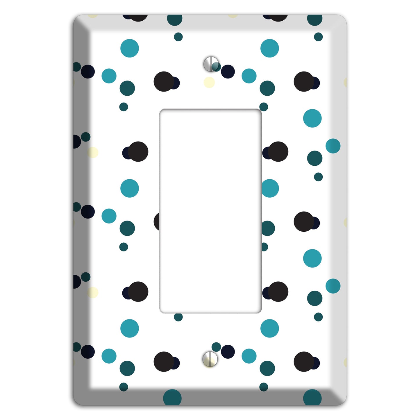 The White with Teal and Black Multi Dots Rocker Wallplate are very unique and cannot be found anywhere else. These USA made metal plates are highly detailed and made with some of the newest UV imaging technology available resulting in photograph quality prints on durable metal switchplates.
