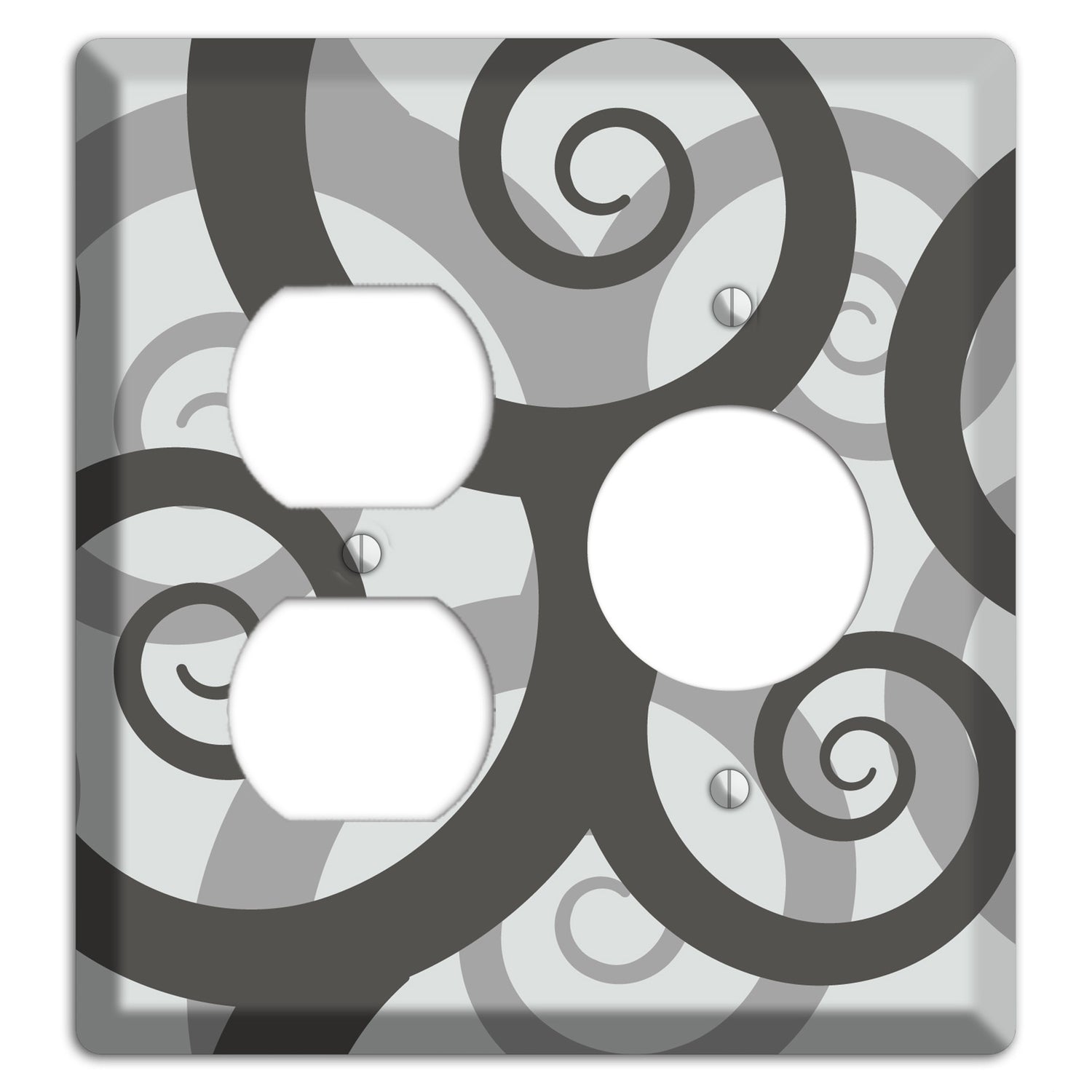 Grey with Black Large Swirl Duplex / Receptacle Wallplate