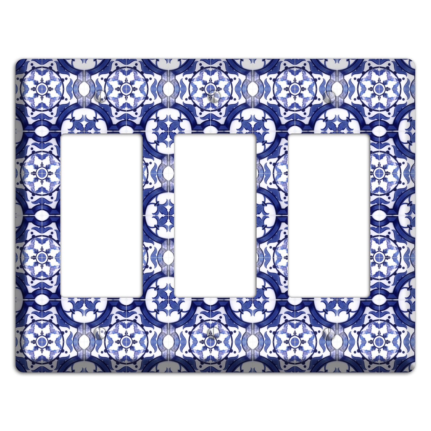 The Tavira Tiles 10 3 Rocker Wallplate are very unique and cannot be found anywhere else. These USA made metal plates are highly detailed and made with some of the newest UV imaging technology available resulting in photograph quality prints on durable metal switchplates.