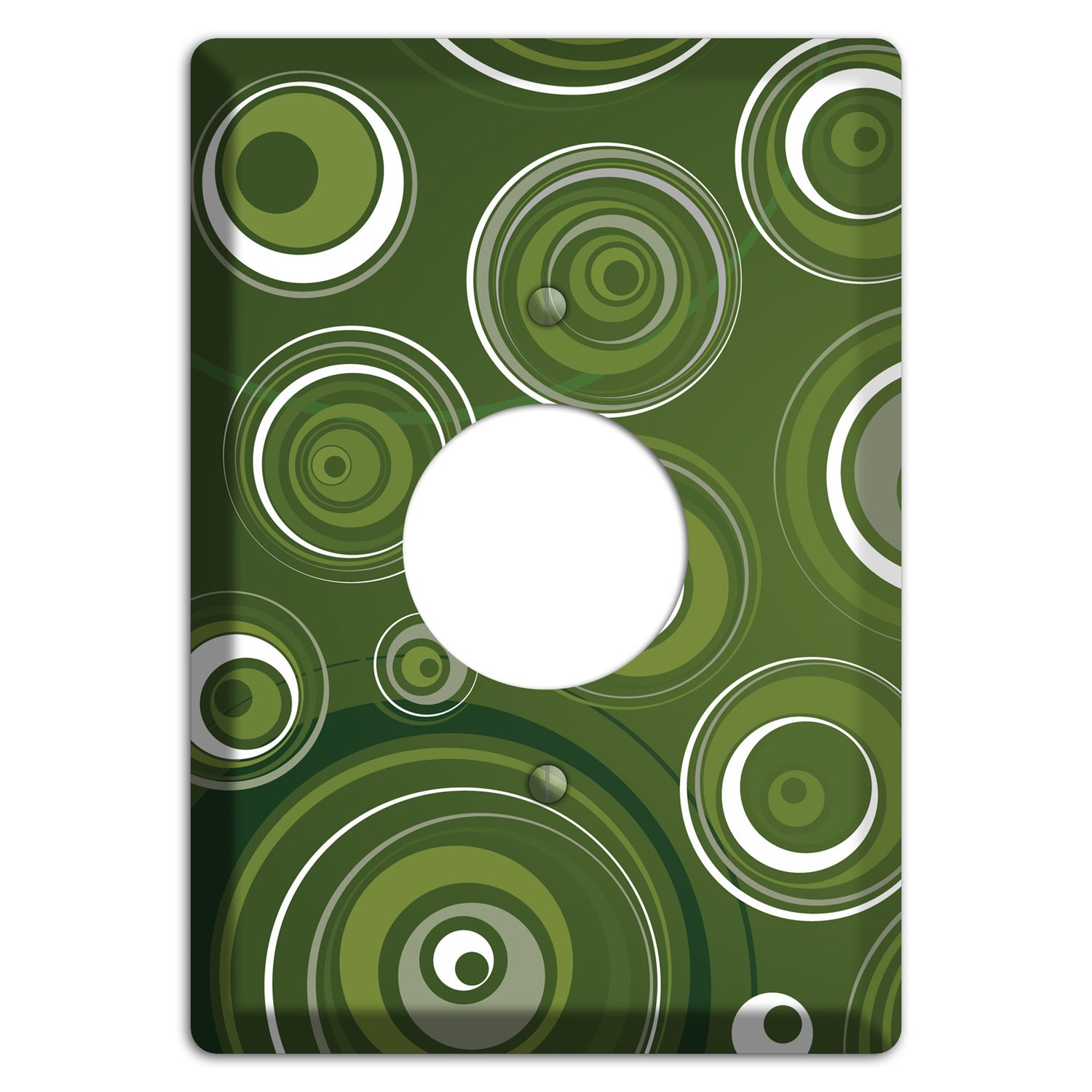 The Green Circles Cover Plates Single Receptacle Wallplate are very unique and cannot be found anywhere else. These USA made metal plates are highly detailed and made with some of the newest UV imaging technology available resulting in photograph quality prints on durable metal switchplates.