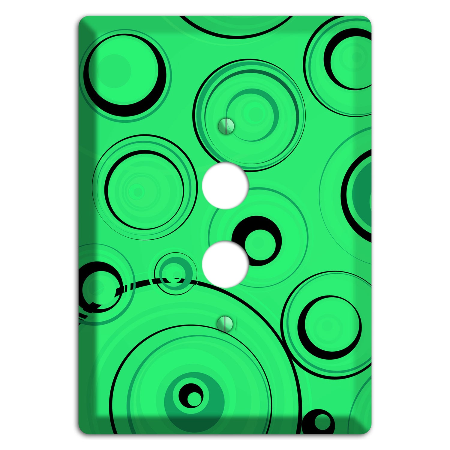 The Bright Green Circles Cover Plates 1 Pushbutton Wallplate are very unique and cannot be found anywhere else. These USA made metal plates are highly detailed and made with some of the newest UV imaging technology available resulting in photograph quality prints on durable metal switchplates.