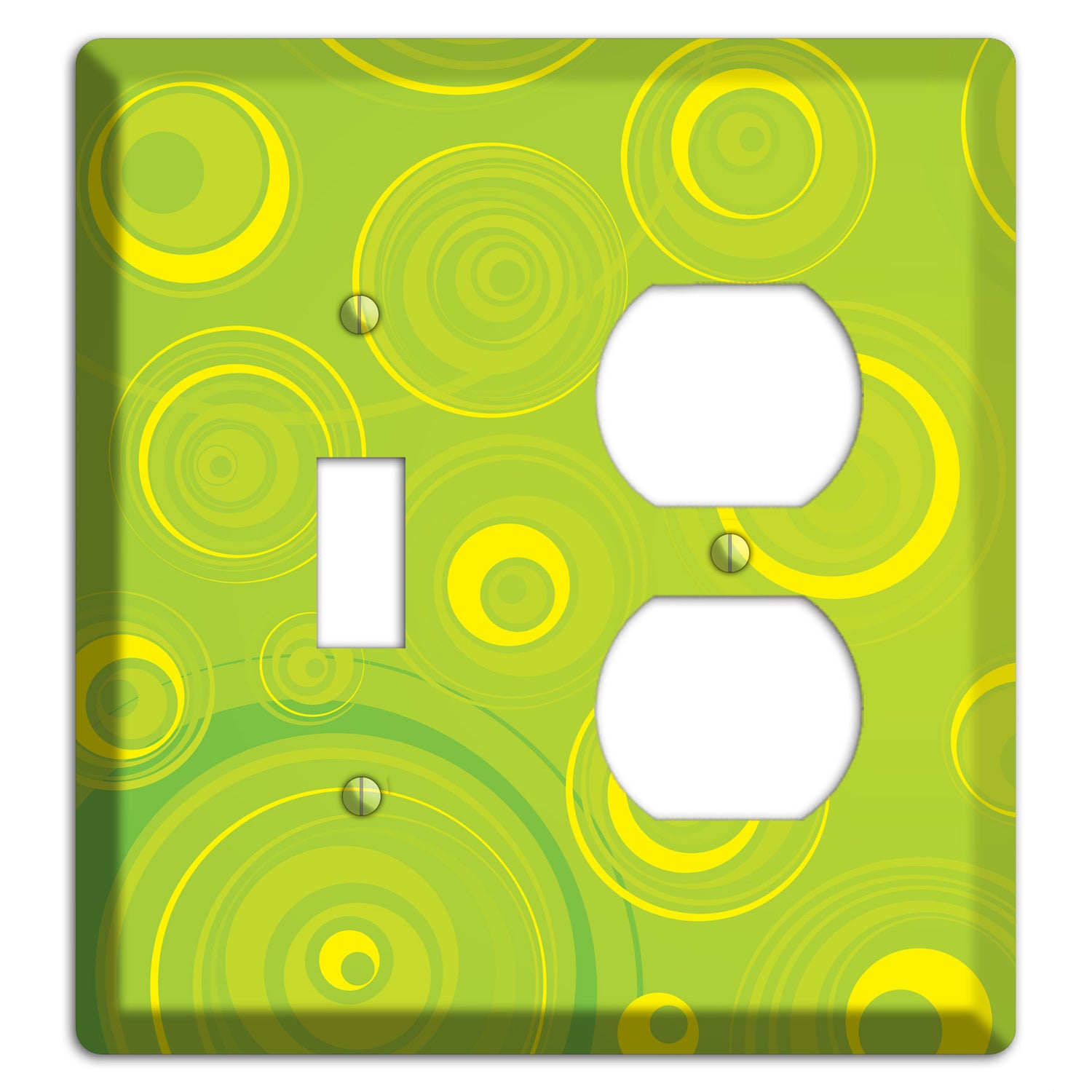The Green-yellow Circles Cover Plates Toggle / Duplex Wallplate are very unique and cannot be found anywhere else. These USA made metal plates are highly detailed and made with some of the newest UV imaging technology available resulting in photograph quality prints on durable metal switchplates.