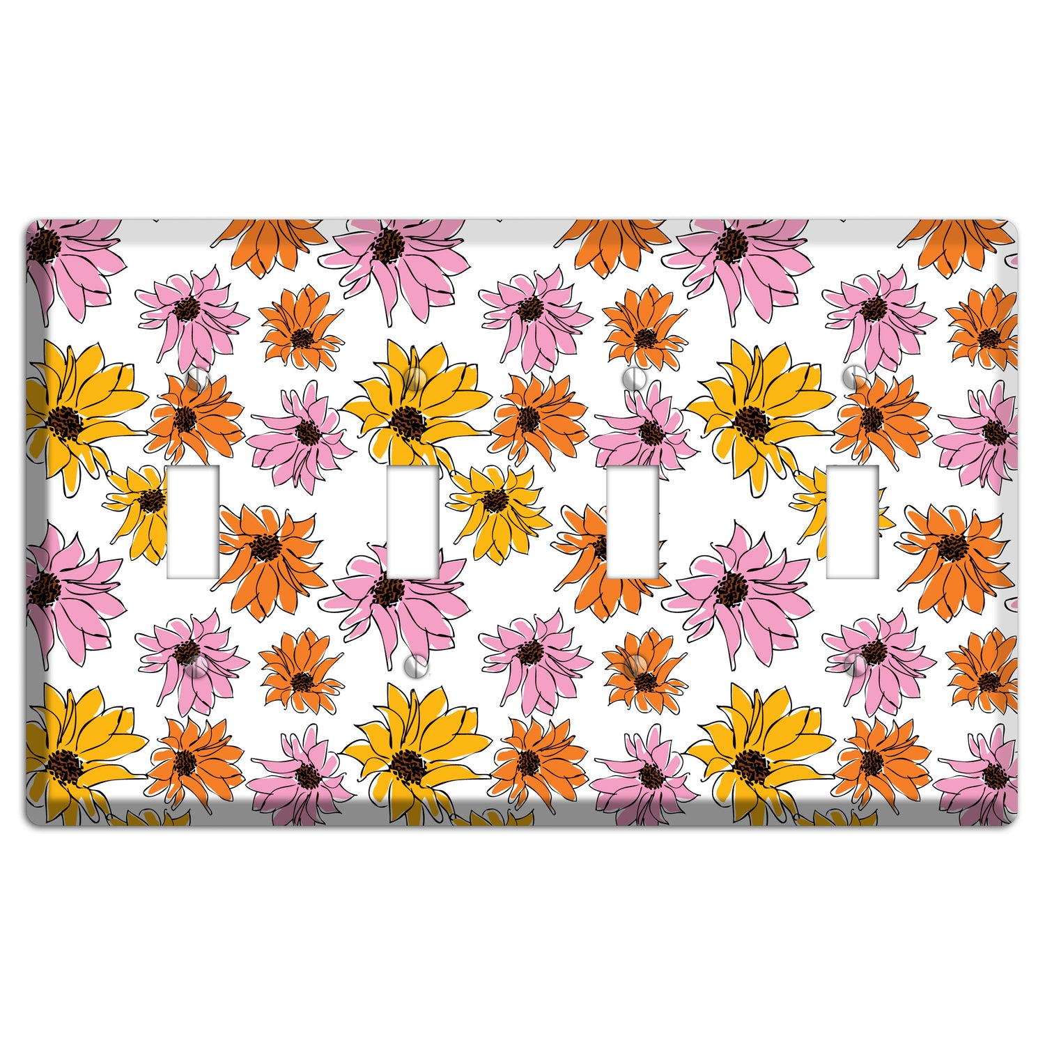 Pink Orange Yellow Flowers 4 Toggle Wallplate