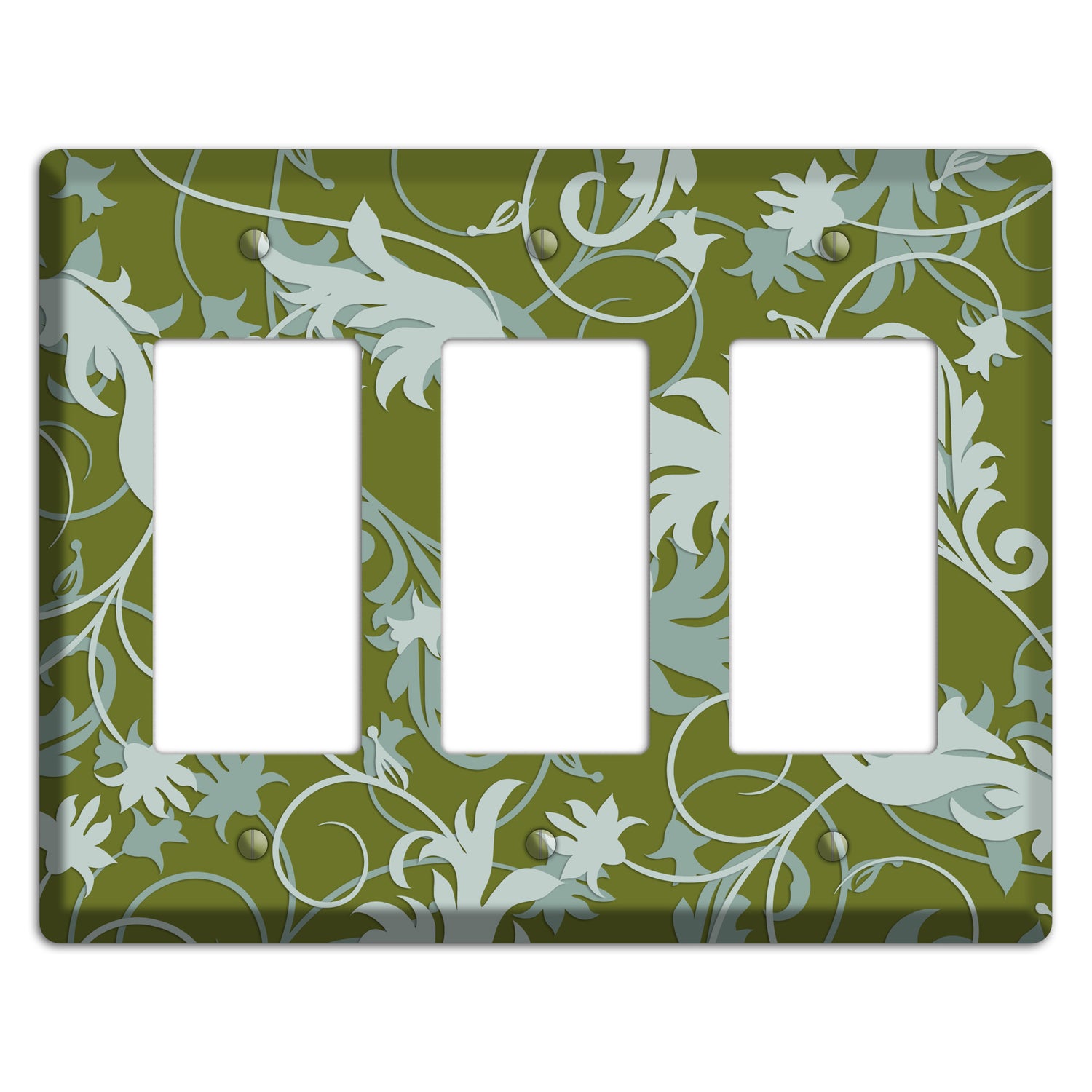 The Green and Beige Victorian Sprig 3 Rocker Wallplate are very unique and cannot be found anywhere else. These USA made metal plates are highly detailed and made with some of the newest UV imaging technology available resulting in photograph quality prints on durable metal switchplates.