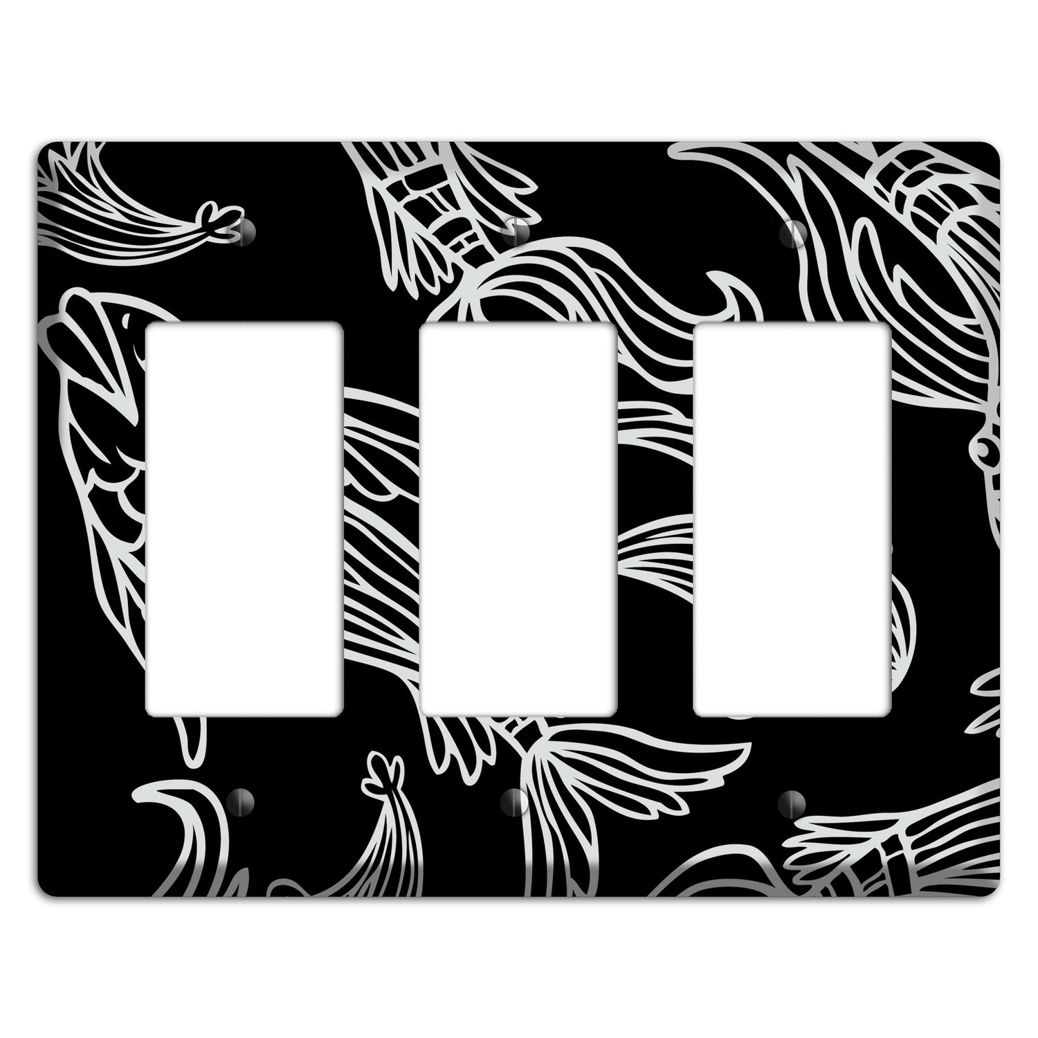 The Black and White Koi Cover Plates 3 Rocker Wallplate are very unique and cannot be found anywhere else. These USA made metal plates are highly detailed and made with some of the newest UV imaging technology available resulting in photograph quality prints on durable metal switchplates.