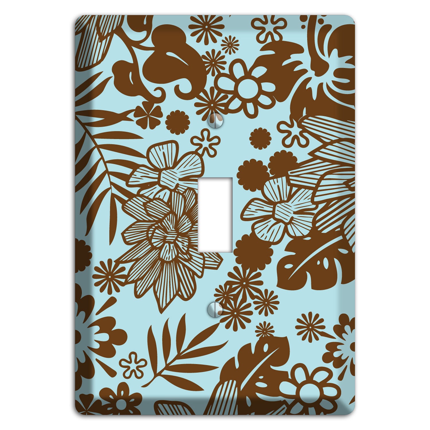 The Blue and Brown Tropical Cover Plates Cover Plates are very unique and cannot be found anywhere else. These USA made metal plates are highly detailed and made with some of the newest UV imaging technology available resulting in photograph quality prints on durable metal switchplates.