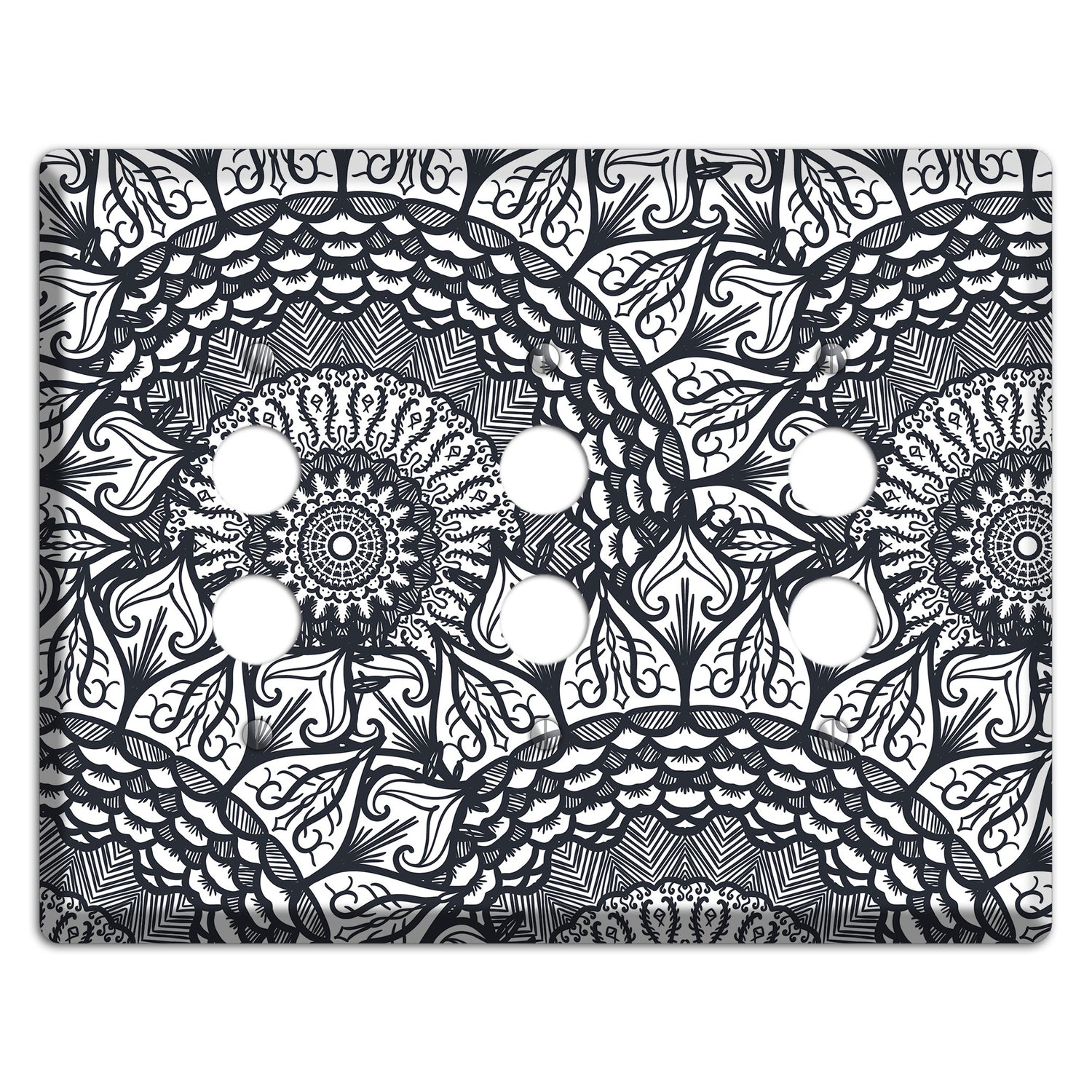Mandala Black and White Style L Cover Plates 3 Pushbutton Wallplate