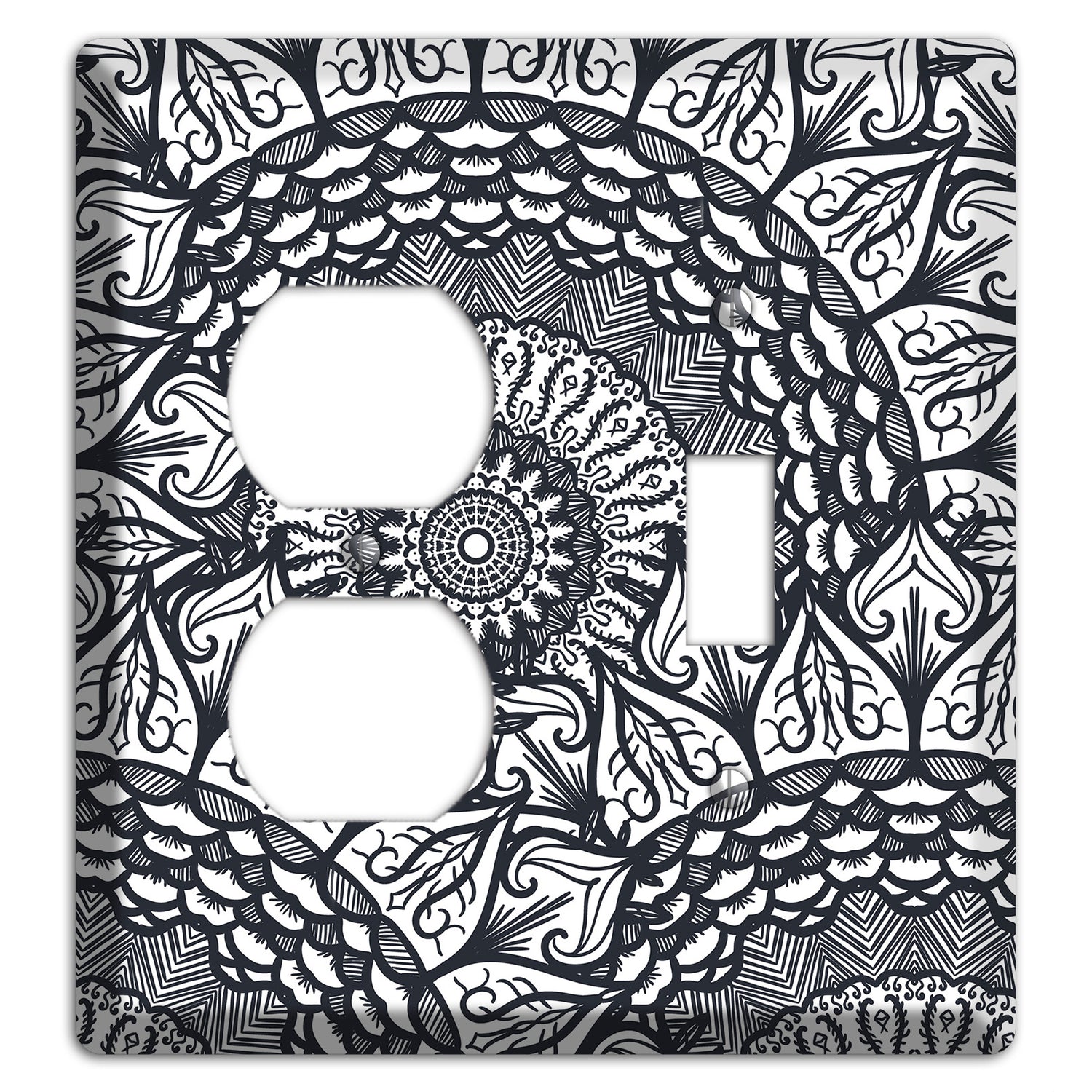Mandala Black and White Style L Cover Plates Duplex / Toggle Wallplate