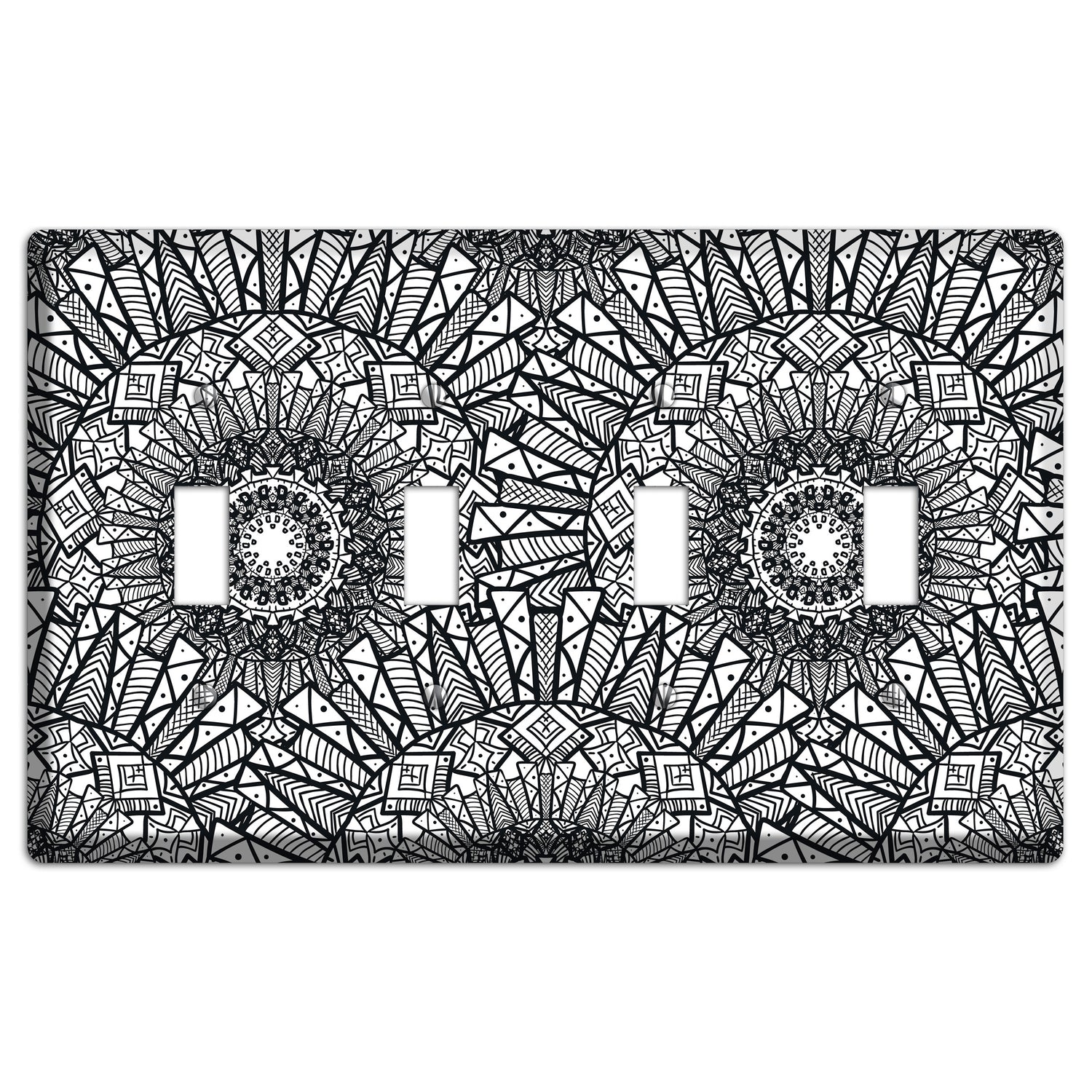 Mandala Black and White Style X Cover Plates 4 Toggle Wallplate