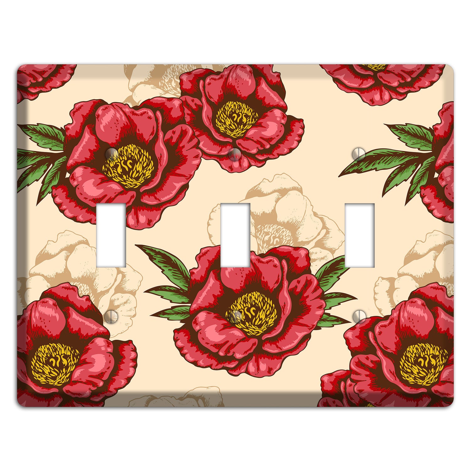 The Red Peony Style A 3 Toggle Wallplate are very unique and cannot be found anywhere else. These USA made metal plates are highly detailed and made with some of the newest UV imaging technology available resulting in photograph quality prints on durable metal switchplates.