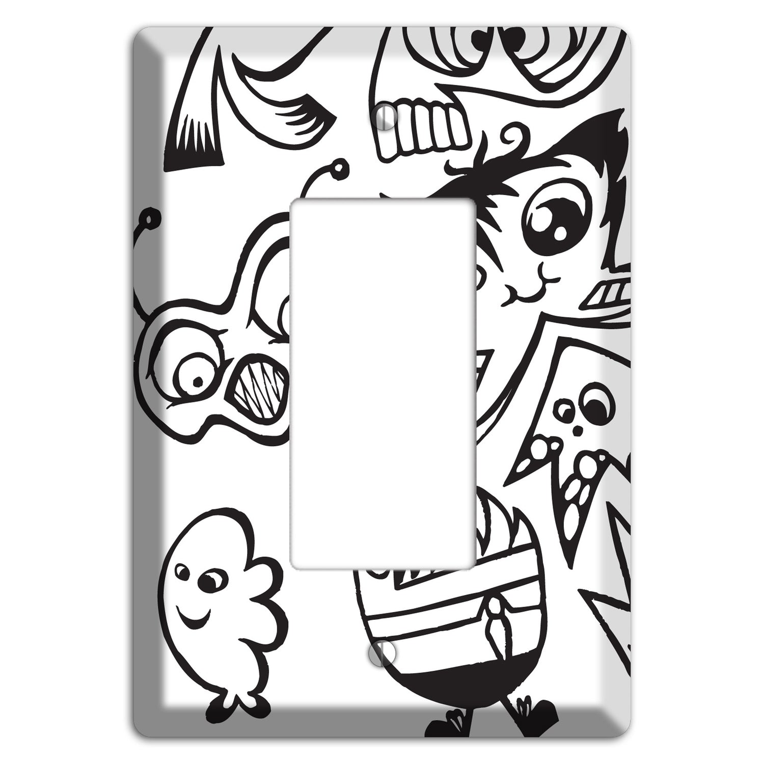 Black and White Whimsical Faces 3 Rocker Wallplate