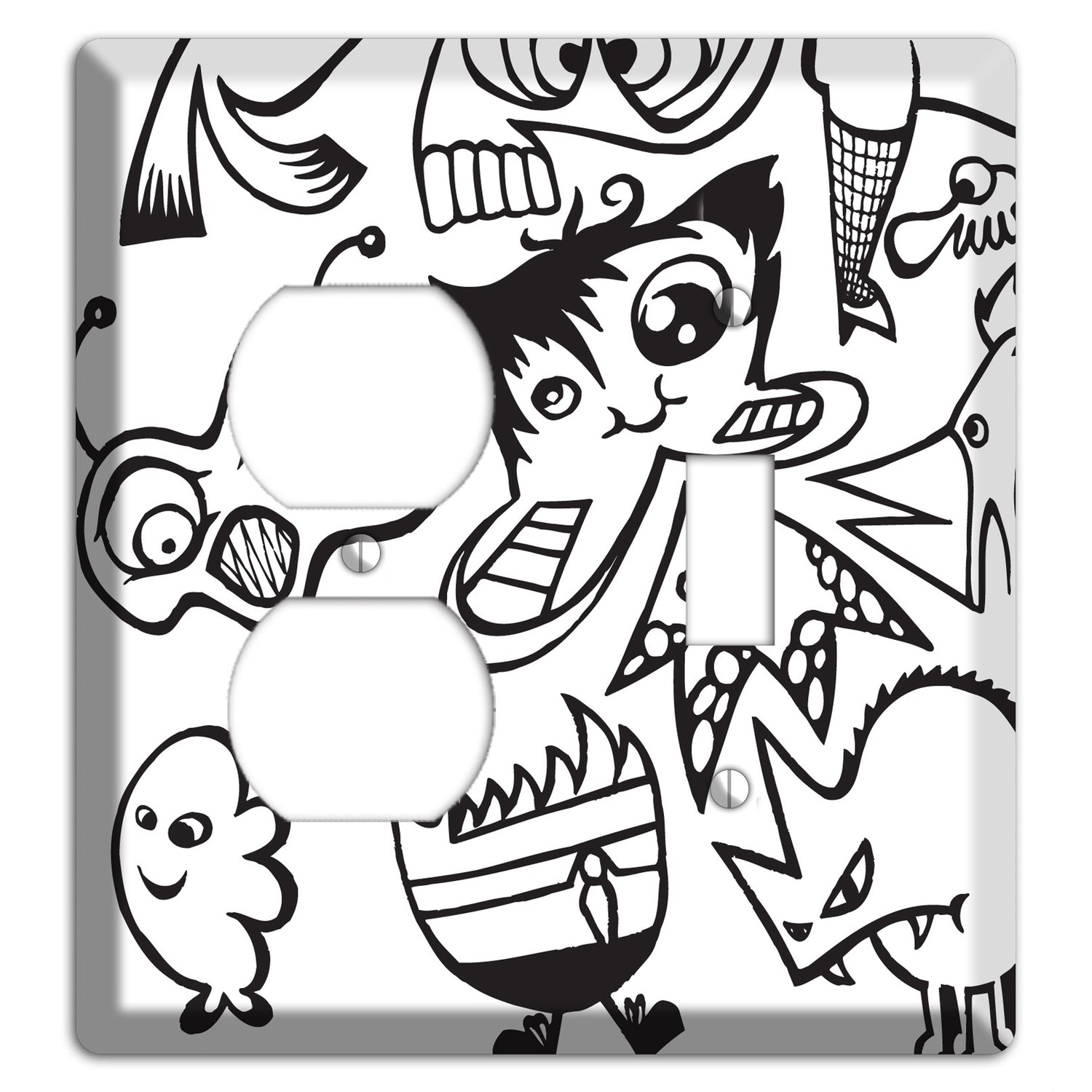 Black and White Whimsical Faces 3 Duplex / Toggle Wallplate