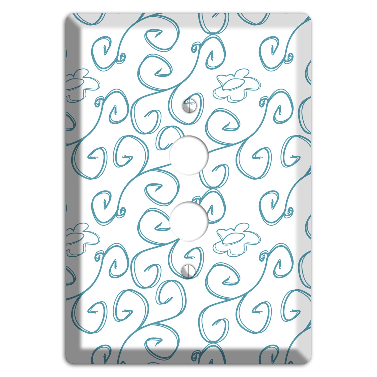 Blue Scroll Flower Contour 1 Pushbutton Wallplate