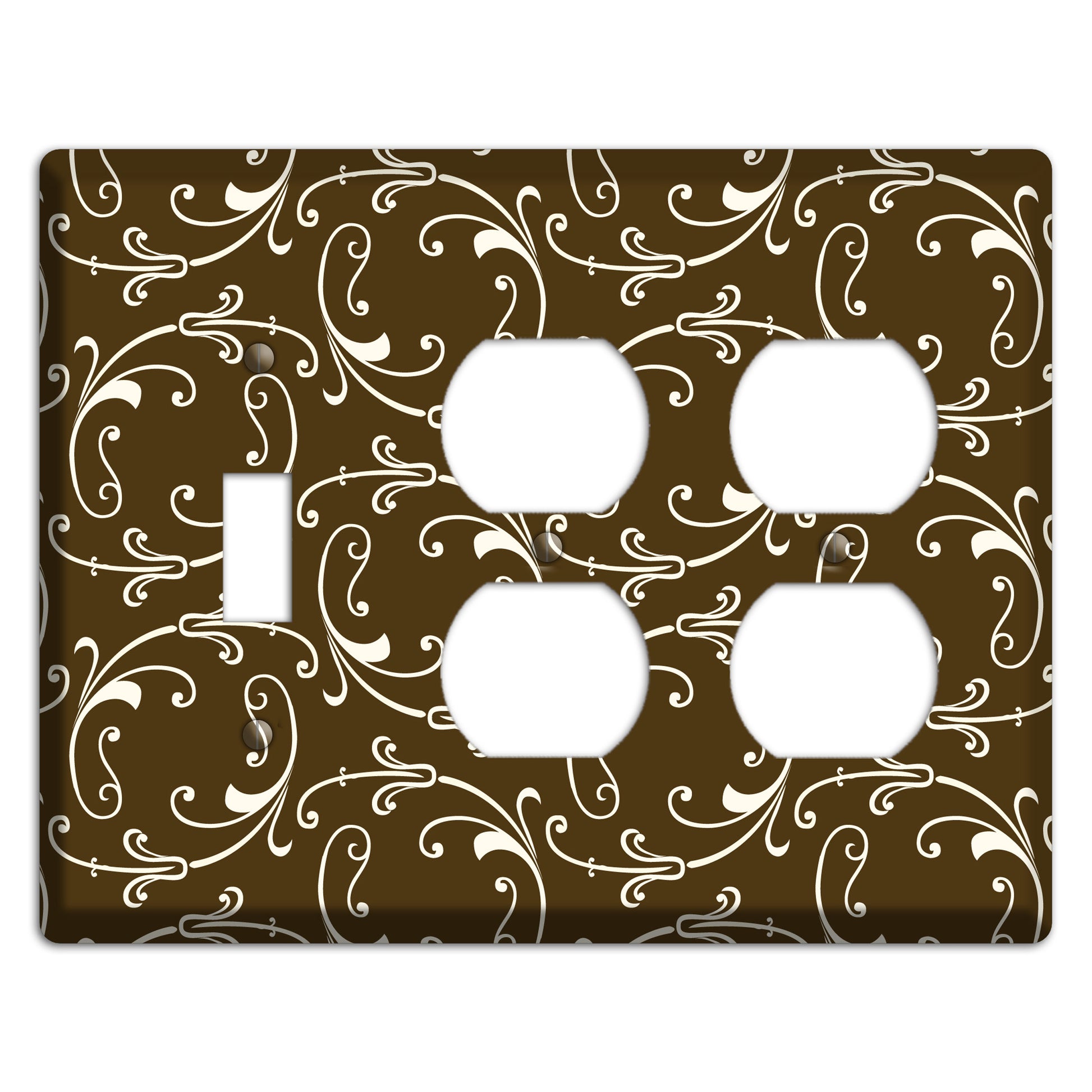 Brown Victorian Sprig Toggle / 2 Duplex Wallplate