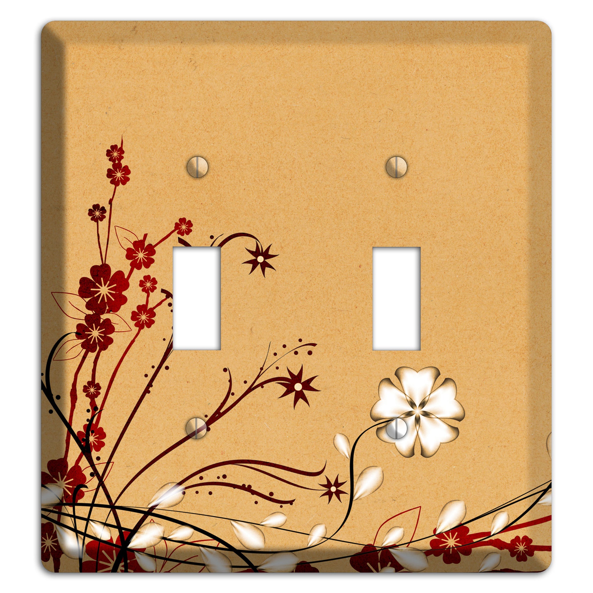 The Delicate Red Flowers Cover Plates 2 Toggle Wallplate are very unique and cannot be found anywhere else. These USA made metal plates are highly detailed and made with some of the newest UV imaging technology available resulting in photograph quality prints on durable metal switchplates.