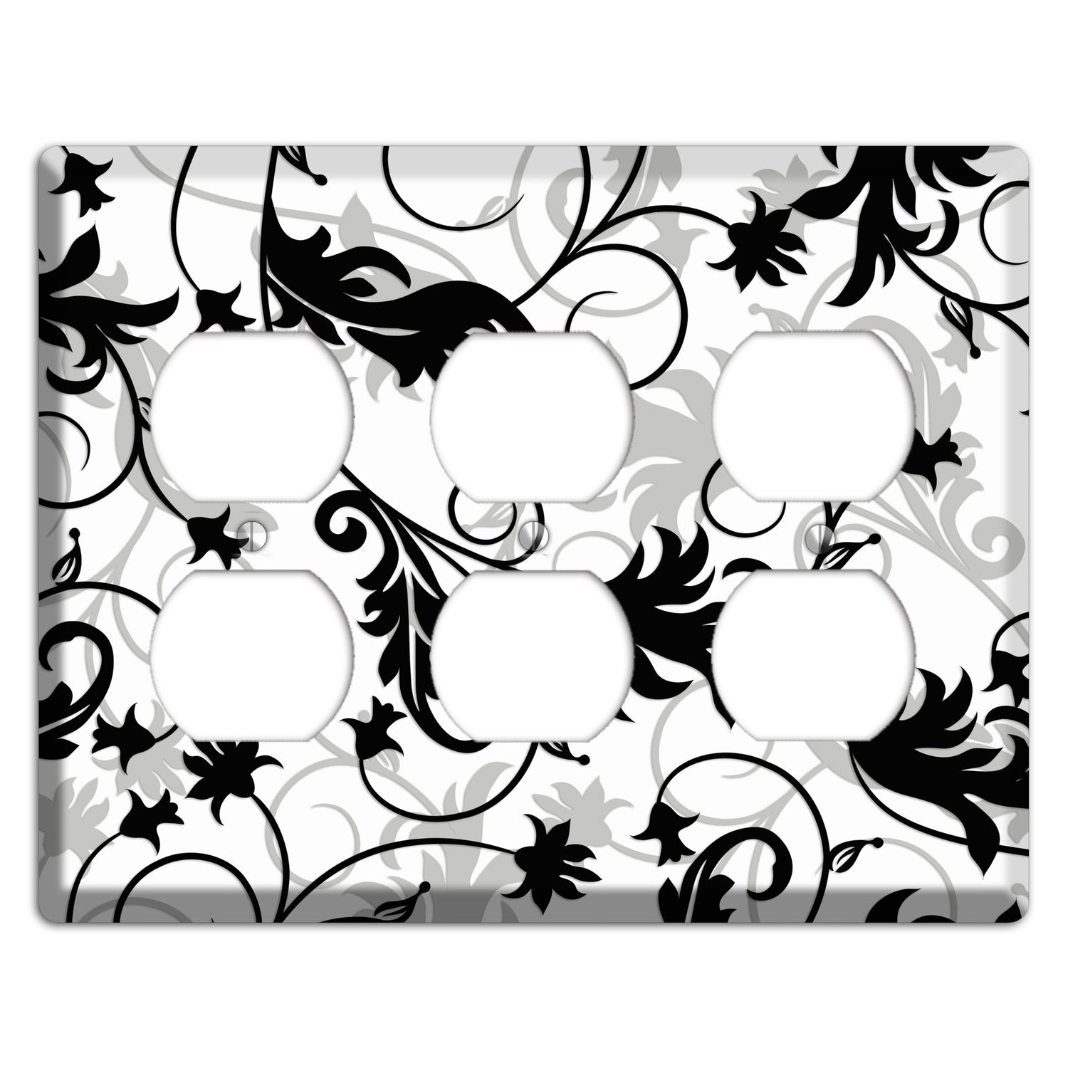 Black White and Grey Victorian Sprig 3 Duplex Wallplate