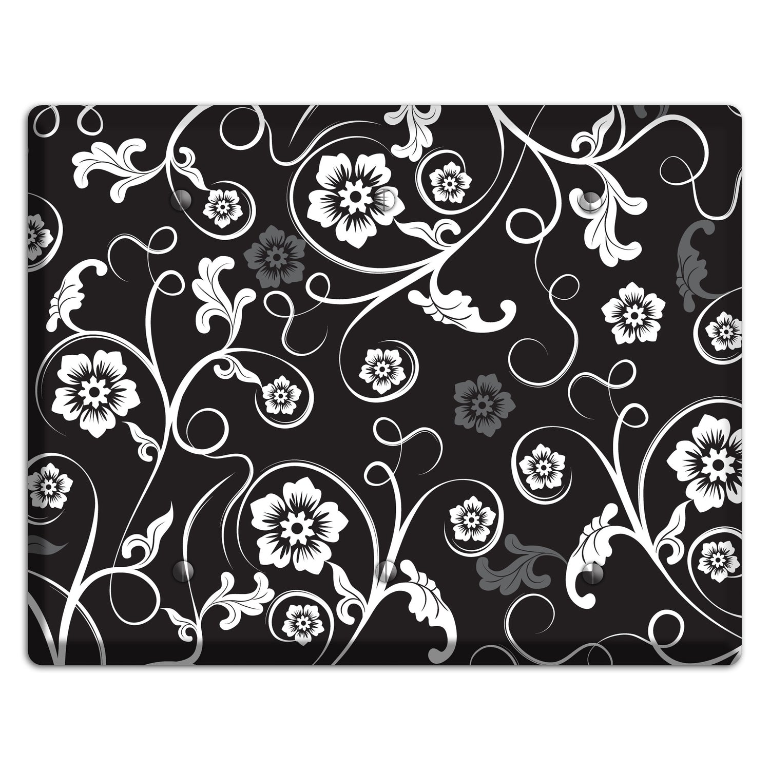 The Black with White Flower Sprig 3 Blank Wallplate are very unique and cannot be found anywhere else. These USA made metal plates are highly detailed and made with some of the newest UV imaging technology available resulting in photograph quality prints on durable metal switchplates.