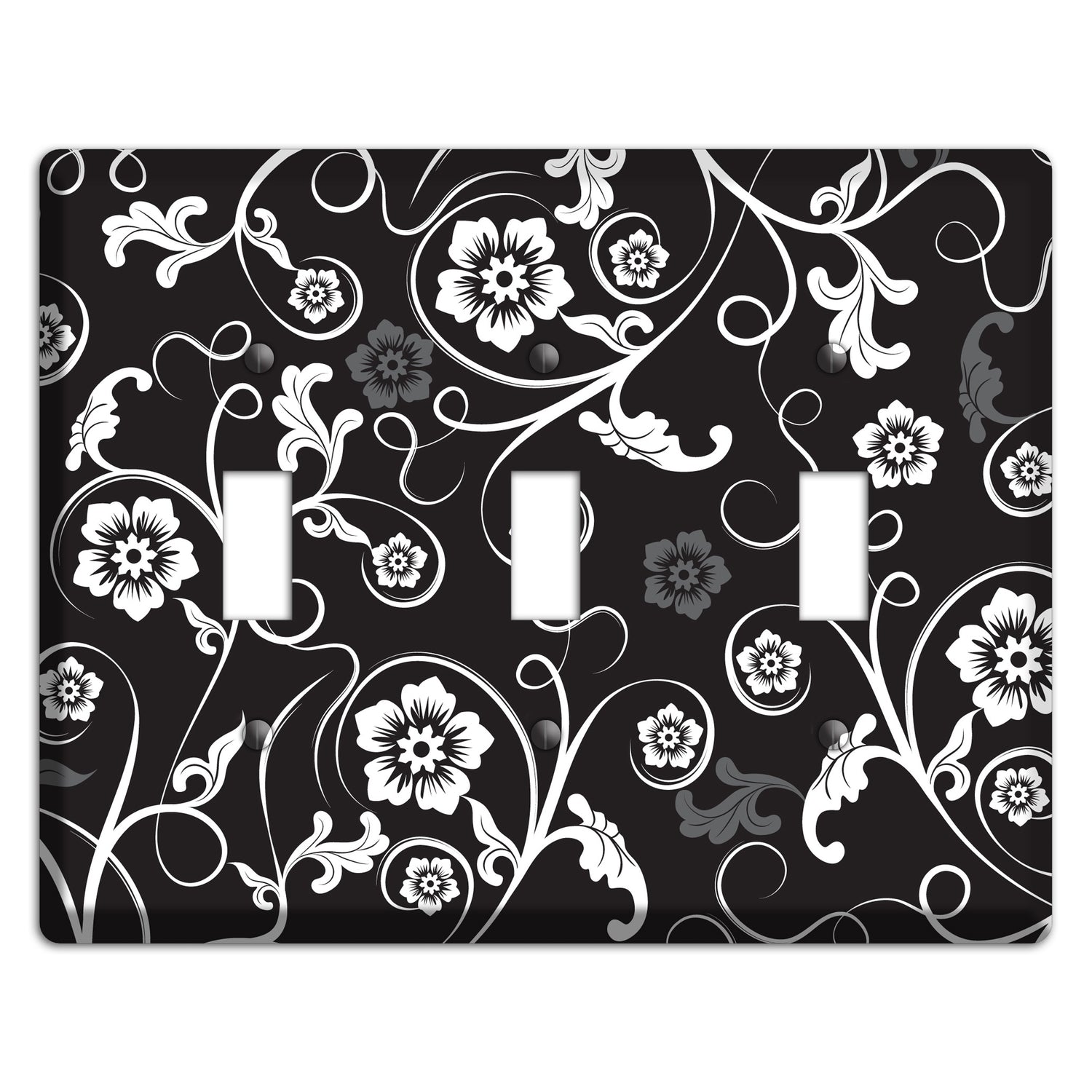 The Black with White Flower Sprig 3 Toggle Wallplate are very unique and cannot be found anywhere else. These USA made metal plates are highly detailed and made with some of the newest UV imaging technology available resulting in photograph quality prints on durable metal switchplates.