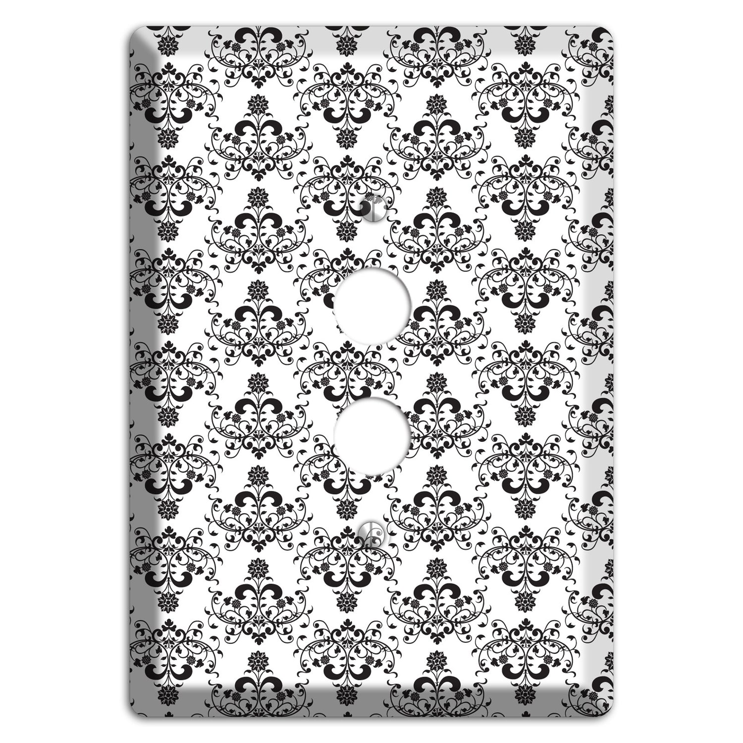 The White with Black Cartouche Half Drop 1 Pushbutton Wallplate are very unique and cannot be found anywhere else. These USA made metal plates are highly detailed and made with some of the newest UV imaging technology available resulting in photograph quality prints on durable metal switchplates.