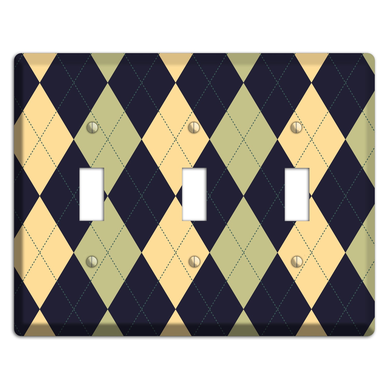 Yellow and Tan Argyle 3 Toggle Wallplate