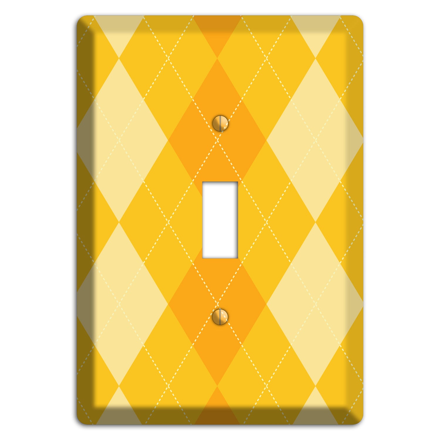The Yellow Argyle Cover Plates Cover Plates are very unique and cannot be found anywhere else. These USA made metal plates are highly detailed and made with some of the newest UV imaging technology available resulting in photograph quality prints on durable metal switchplates.