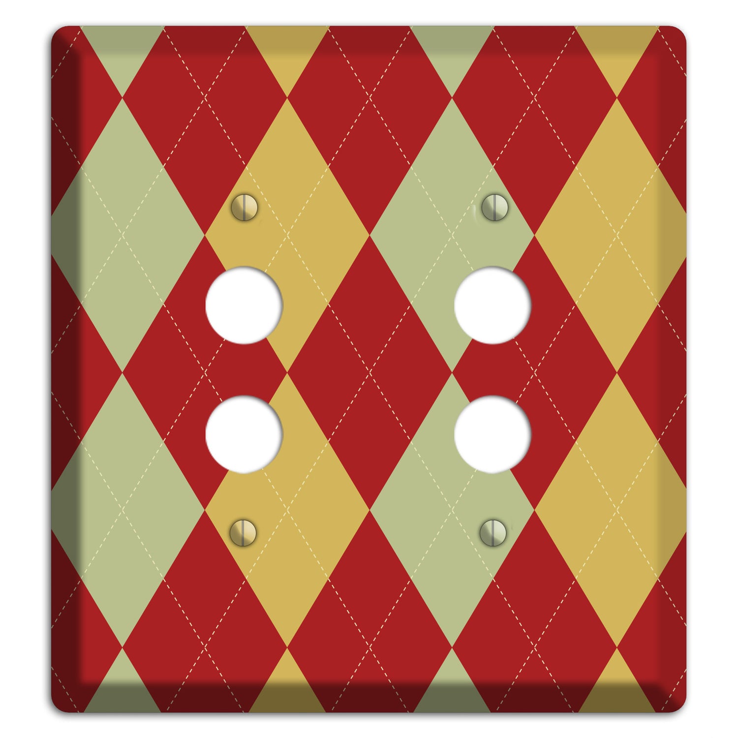 Burnt Orange and Light Green Argyle 2 Pushbutton Wallplate
