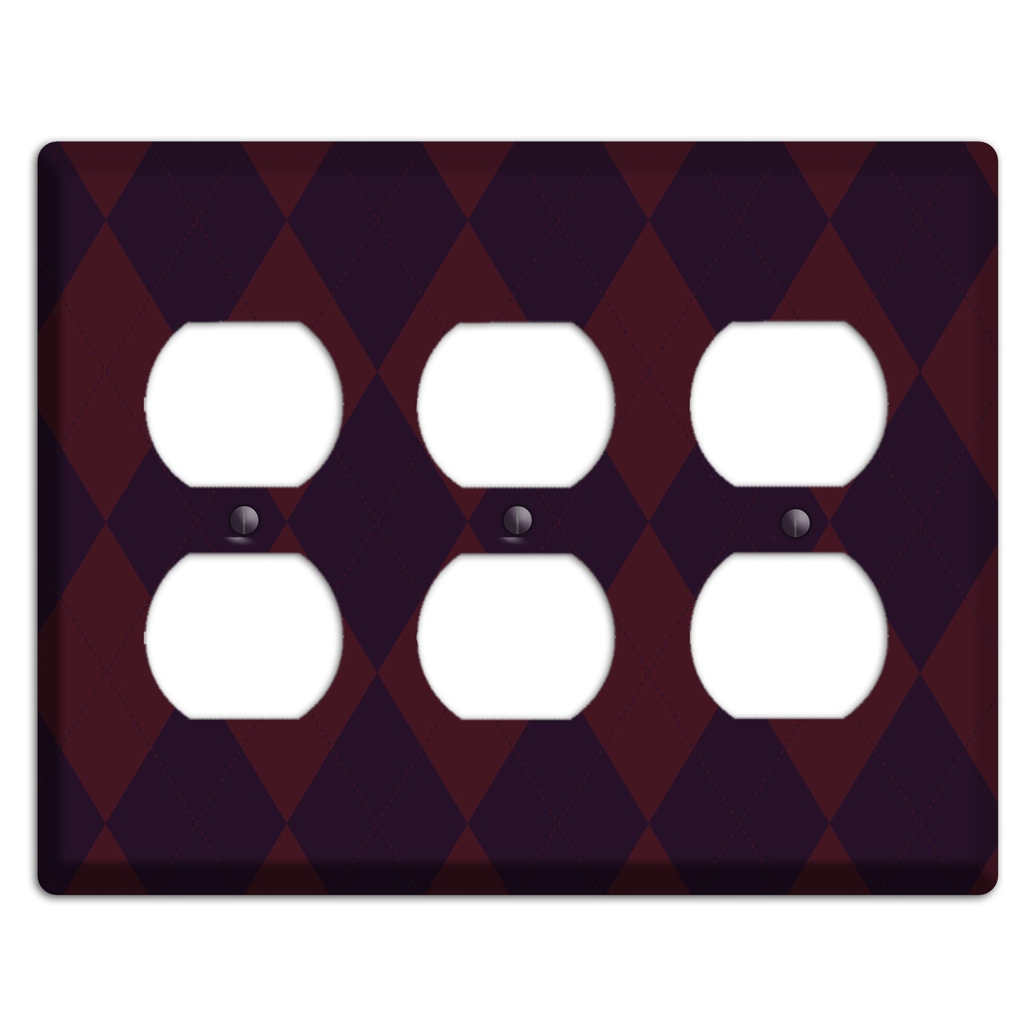 The Burgundy Argyle Cover Plates 3 Duplex Wallplate are very unique and cannot be found anywhere else. These USA made metal plates are highly detailed and made with some of the newest UV imaging technology available resulting in photograph quality prints on durable metal switchplates.