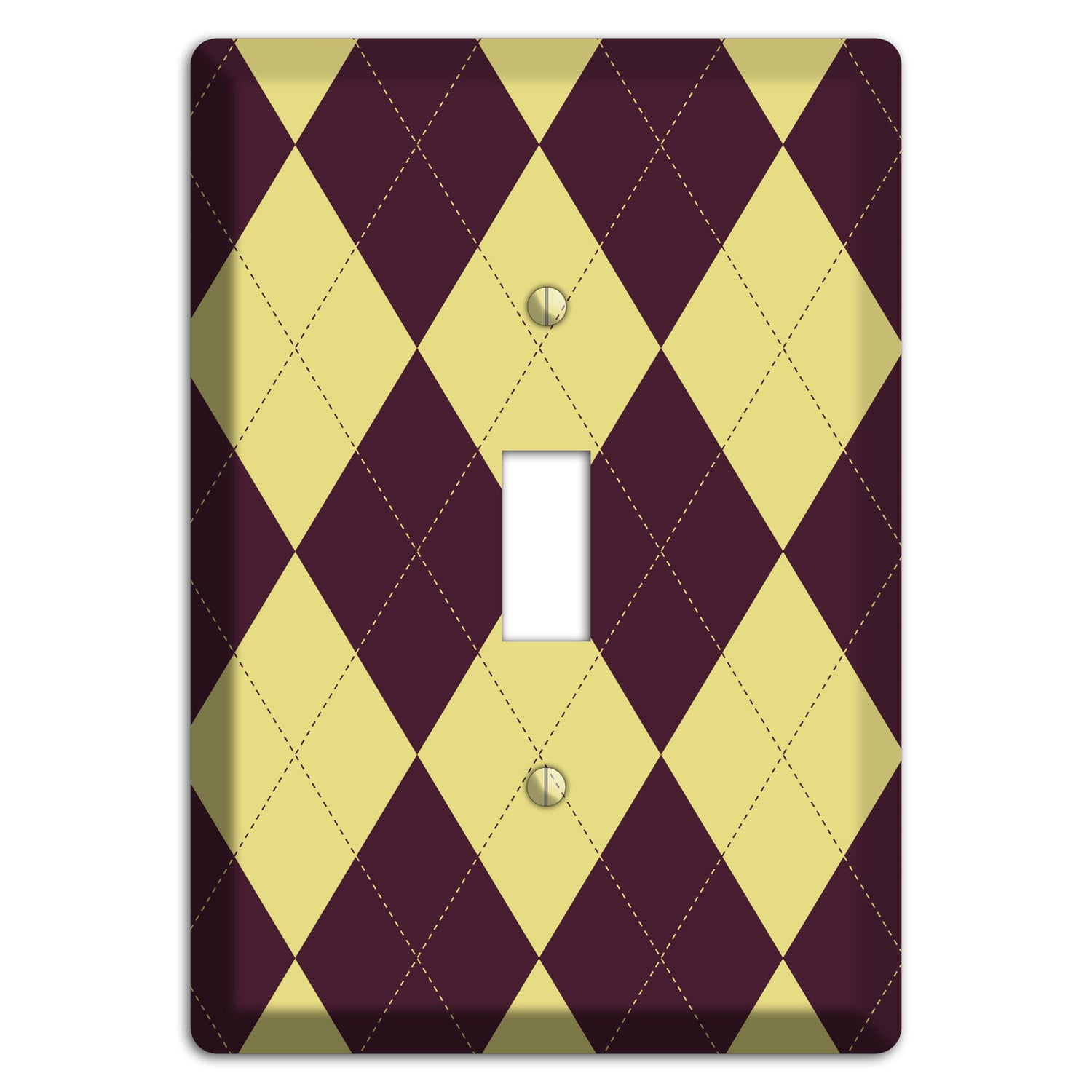 The Yellow and Dark Maroon Argyle Cover Plates Cover Plates are very unique and cannot be found anywhere else. These USA made metal plates are highly detailed and made with some of the newest UV imaging technology available resulting in photograph quality prints on durable metal switchplates.