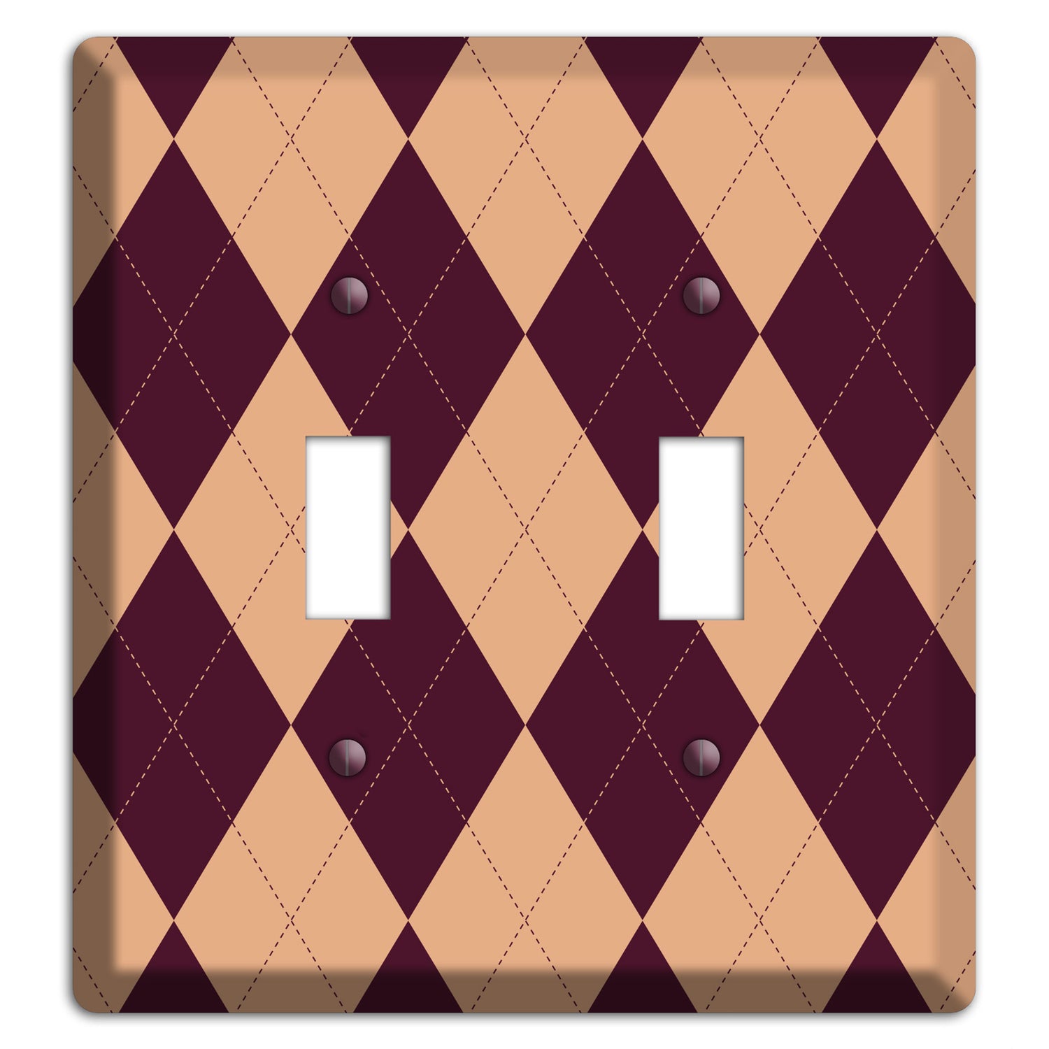 The Purple and Beige Argyle Cover Plates 2 Toggle Wallplate are very unique and cannot be found anywhere else. These USA made metal plates are highly detailed and made with some of the newest UV imaging technology available resulting in photograph quality prints on durable metal switchplates.