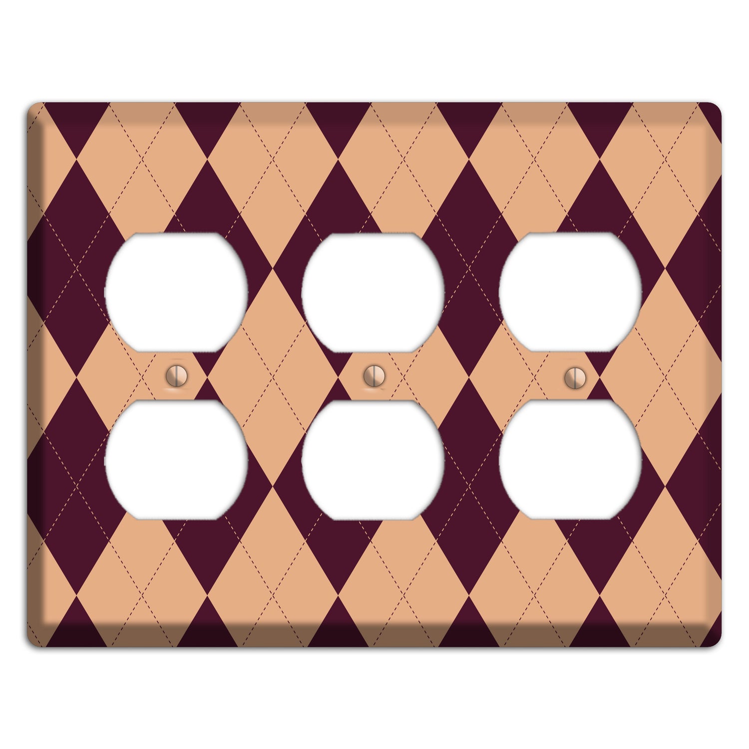 The Purple and Beige Argyle Cover Plates 3 Duplex Wallplate are very unique and cannot be found anywhere else. These USA made metal plates are highly detailed and made with some of the newest UV imaging technology available resulting in photograph quality prints on durable metal switchplates.
