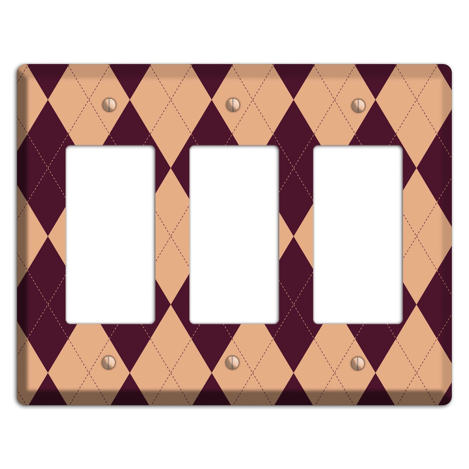 The Purple and Beige Argyle Cover Plates 3 Rocker Wallplate are very unique and cannot be found anywhere else. These USA made metal plates are highly detailed and made with some of the newest UV imaging technology available resulting in photograph quality prints on durable metal switchplates.