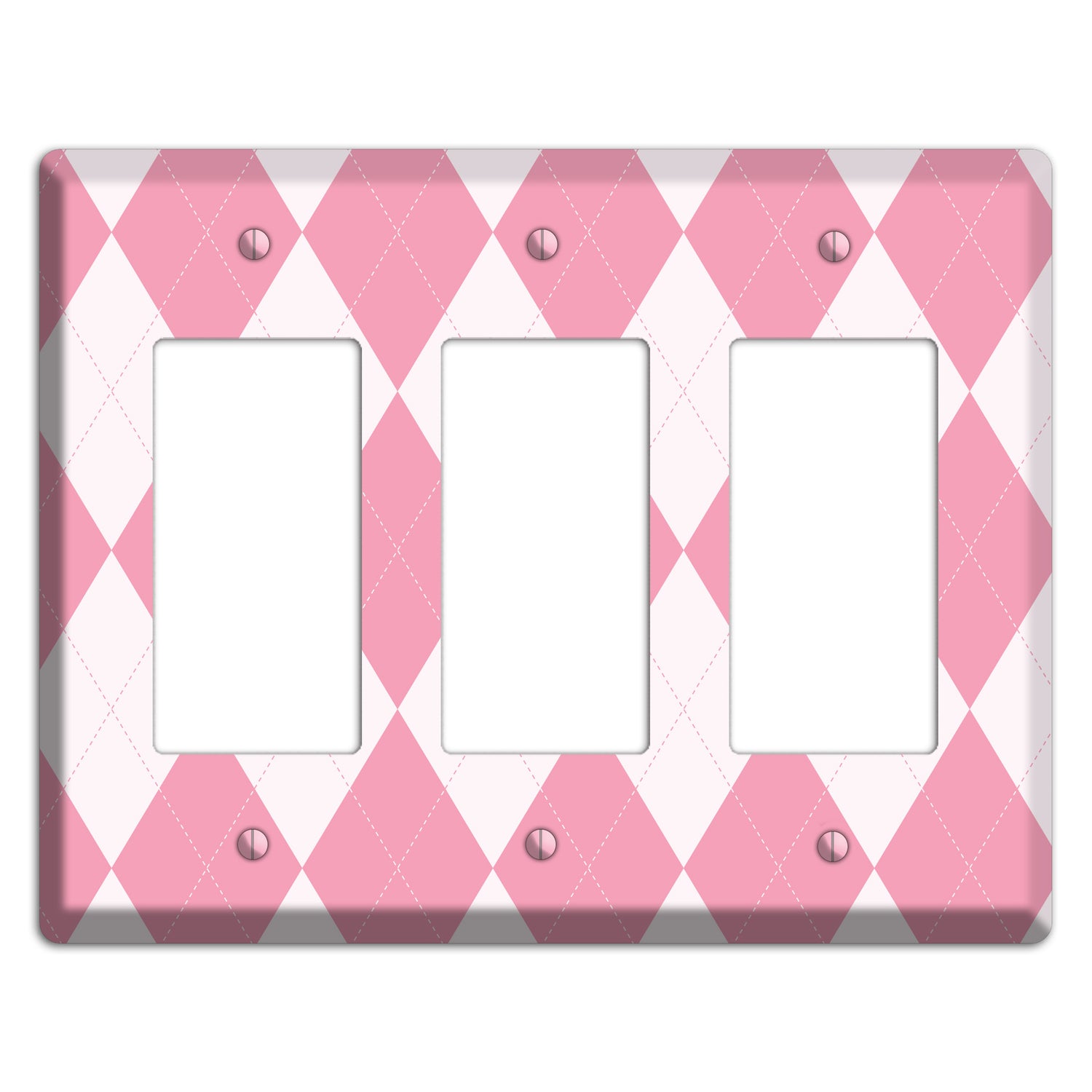 The Pink Argyle Cover Plates 3 Rocker Wallplate are very unique and cannot be found anywhere else. These USA made metal plates are highly detailed and made with some of the newest UV imaging technology available resulting in photograph quality prints on durable metal switchplates.