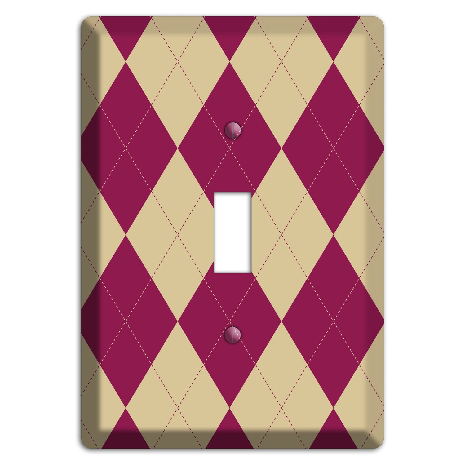 The Red and Tan Argyle Cover Plates Cover Plates are very unique and cannot be found anywhere else. These USA made metal plates are highly detailed and made with some of the newest UV imaging technology available resulting in photograph quality prints on durable metal switchplates.