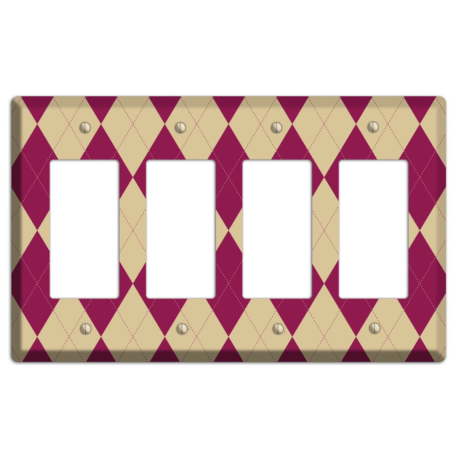 The Red and Tan Argyle Cover Plates 4 Rocker Wallplate are very unique and cannot be found anywhere else. These USA made metal plates are highly detailed and made with some of the newest UV imaging technology available resulting in photograph quality prints on durable metal switchplates.