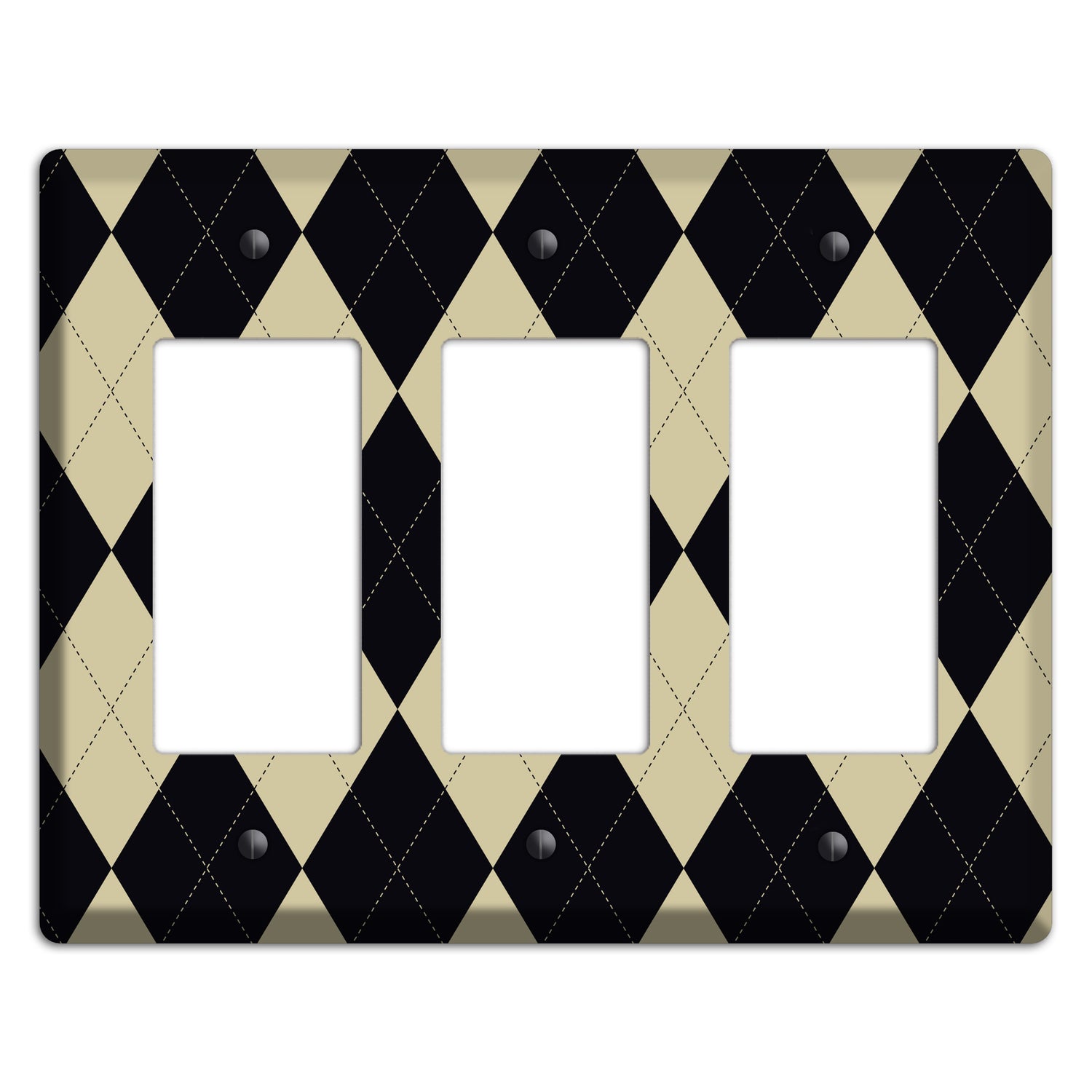 The Tan and Black Argyle Cover Plates 3 Rocker Wallplate are very unique and cannot be found anywhere else. These USA made metal plates are highly detailed and made with some of the newest UV imaging technology available resulting in photograph quality prints on durable metal switchplates.