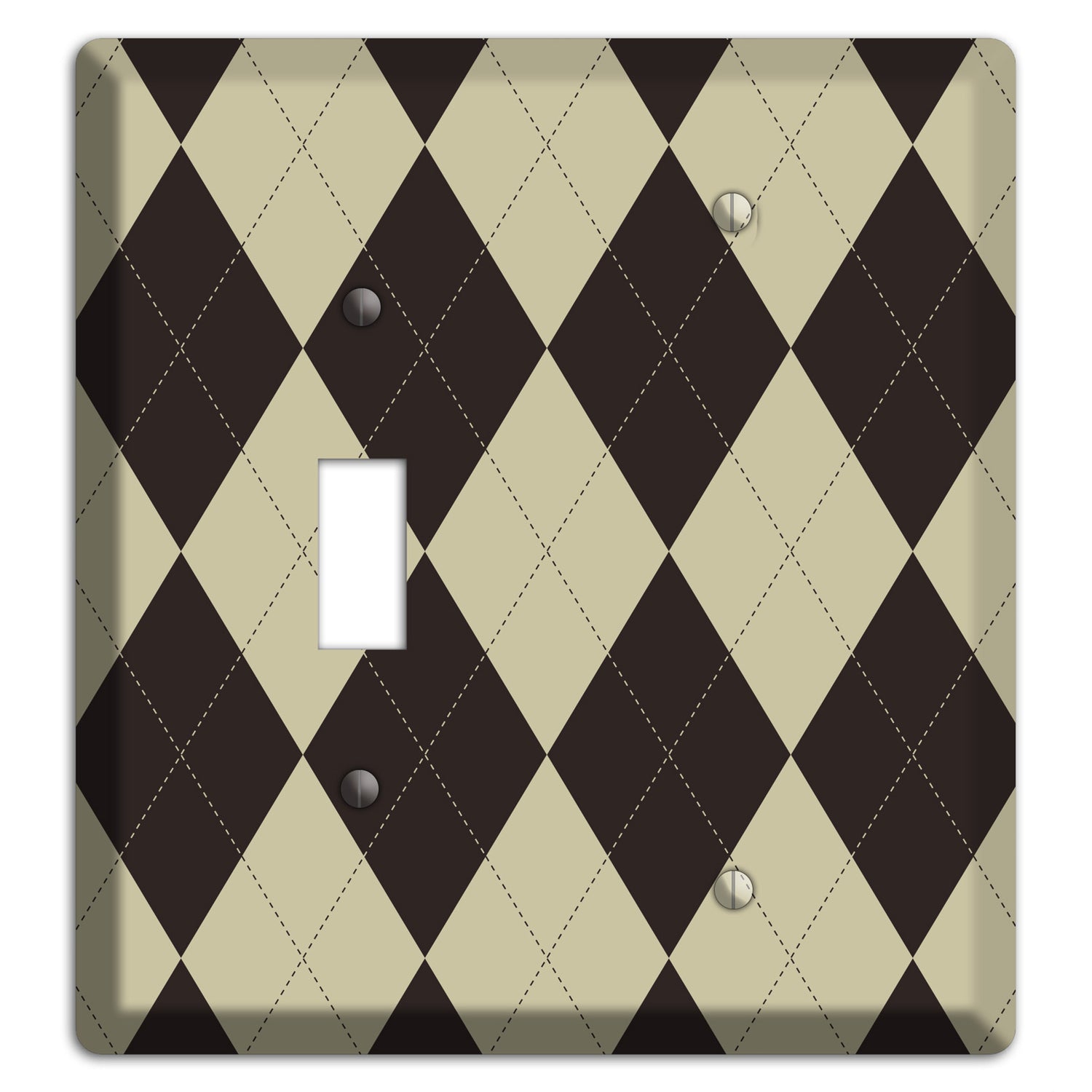 The Beige and Black Argyle Cover Plates Toggle / Blank Wallplate are very unique and cannot be found anywhere else. These USA made metal plates are highly detailed and made with some of the newest UV imaging technology available resulting in photograph quality prints on durable metal switchplates.