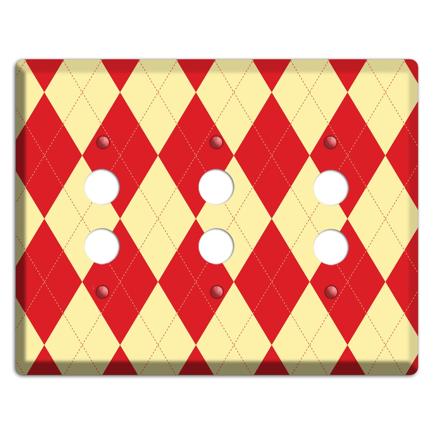 Orange and Yellow Argyle 3 Pushbutton Wallplate