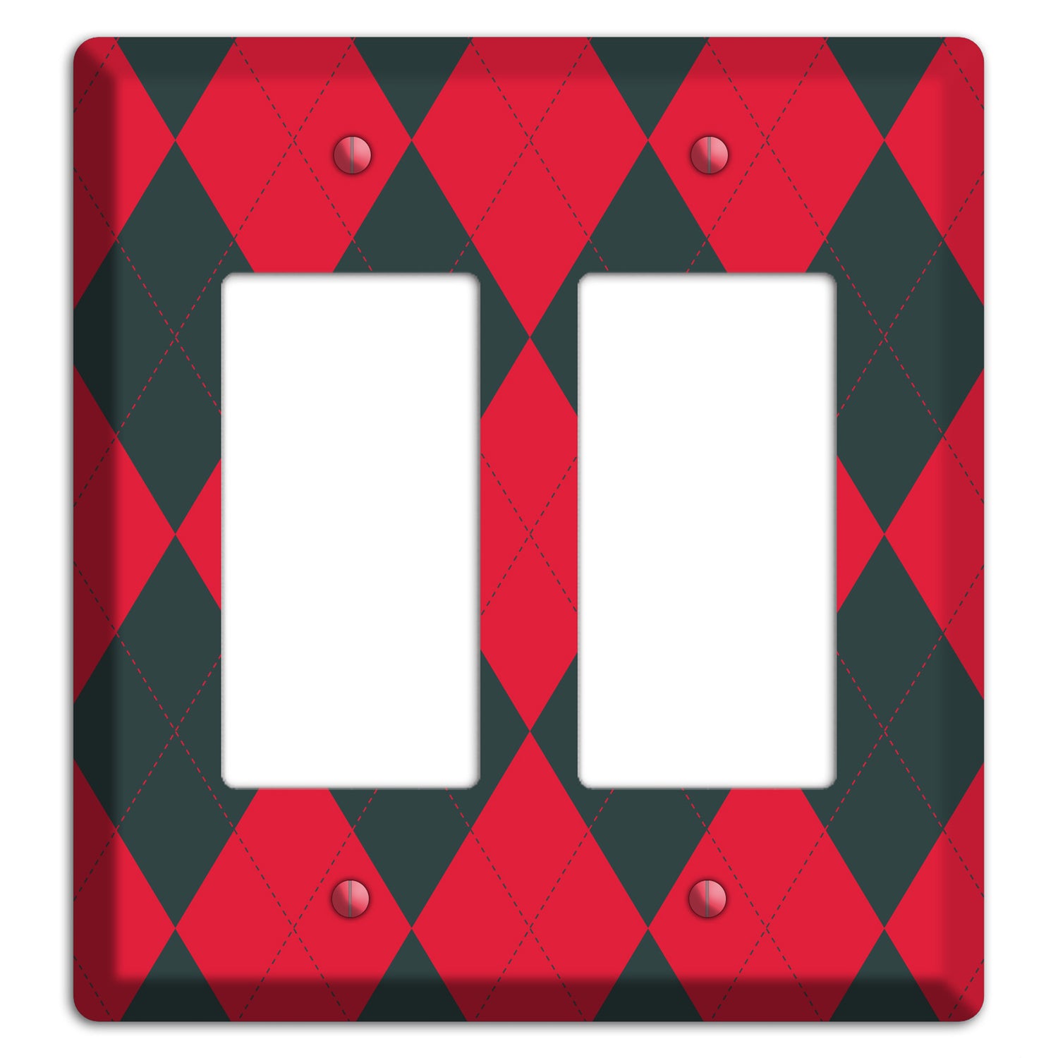 The Red and Black Argyle Cover Plates 2 Rocker Wallplate are very unique and cannot be found anywhere else. These USA made metal plates are highly detailed and made with some of the newest UV imaging technology available resulting in photograph quality prints on durable metal switchplates.