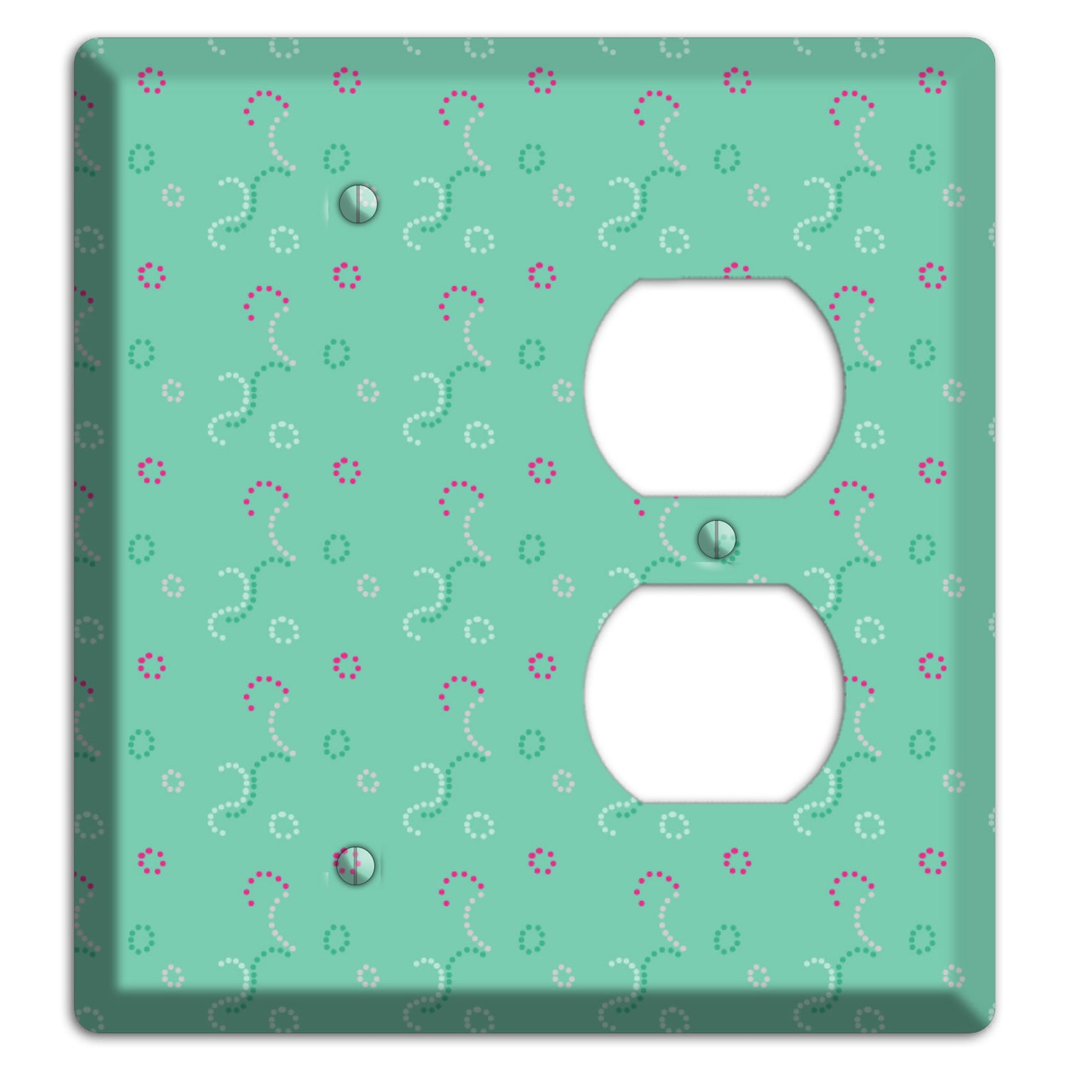 The Multi Aqua with Fuschia Stipple Blank / Duplex Wallplate are very unique and cannot be found anywhere else. These USA made metal plates are highly detailed and made with some of the newest UV imaging technology available resulting in photograph quality prints on durable metal switchplates.