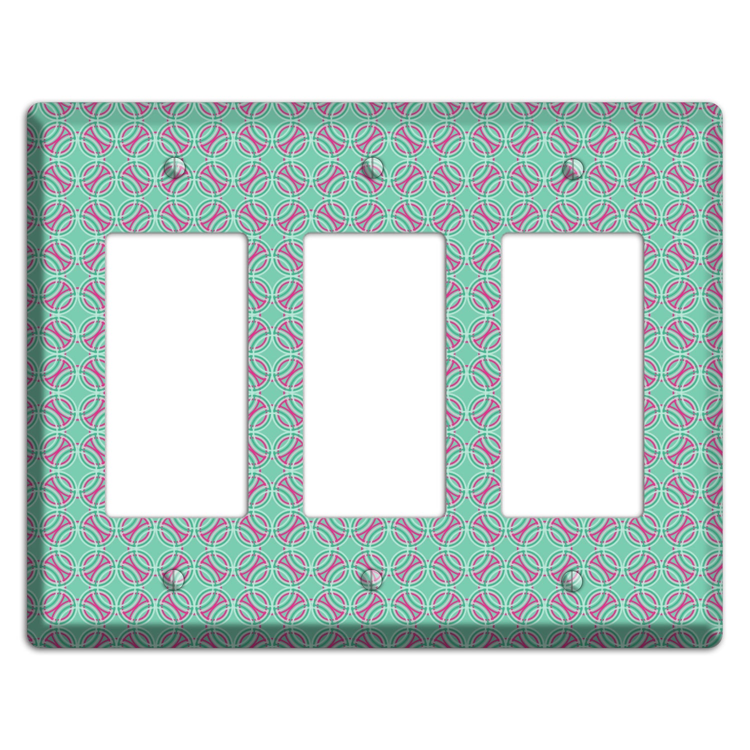 Multi Aqua with Fuschia Concentric Circles Overlay 3 Rocker Wallplate