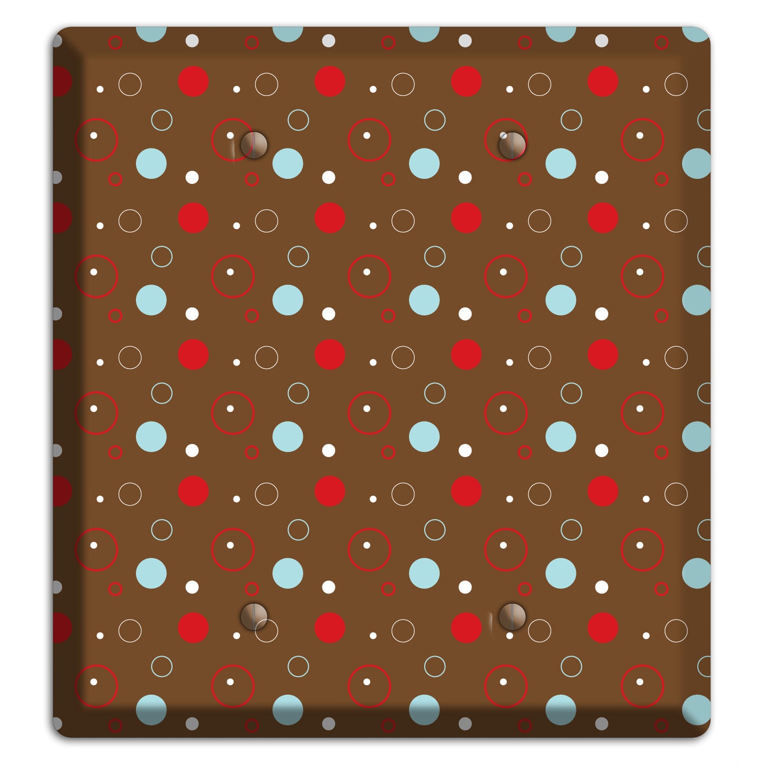 The Brown with Red and Dusty Blue Dots and Circles 2 Blank Wallplate are very unique and cannot be found anywhere else. These USA made metal plates are highly detailed and made with some of the newest UV imaging technology available resulting in photograph quality prints on durable metal switchplates.
