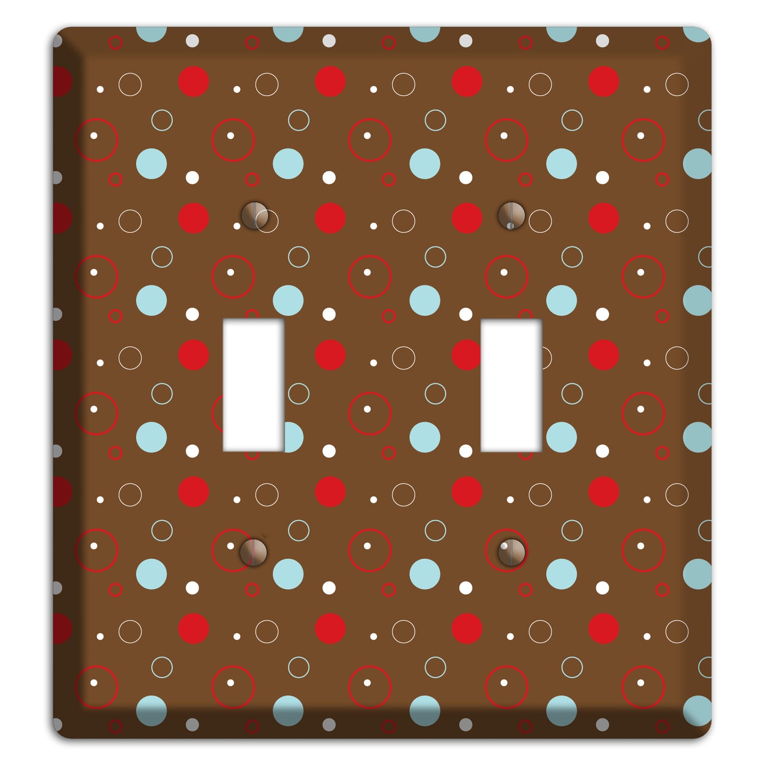 Brown with Red and Dusty Blue Dots and Circles 2 Toggle Wallplate