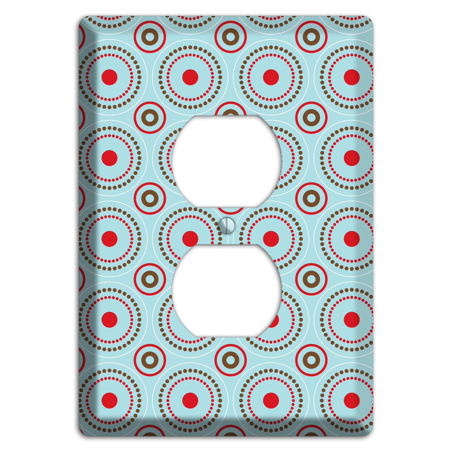The Dusty Blue with Red and Brown Retro Suzani Duplex Outlet Wallplate are very unique and cannot be found anywhere else. These USA made metal plates are highly detailed and made with some of the newest UV imaging technology available resulting in photograph quality prints on durable metal switchplates.