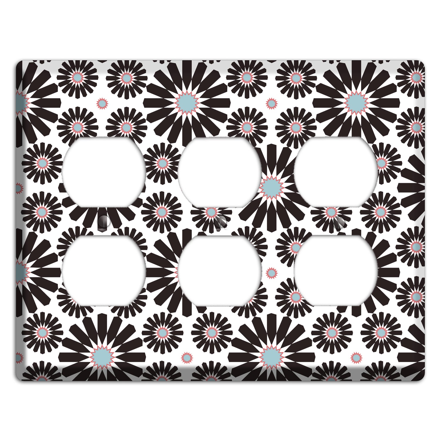The Dusty Blue Maroon Scandinavian Floral 3 3 Duplex Wallplate are very unique and cannot be found anywhere else. These USA made metal plates are highly detailed and made with some of the newest UV imaging technology available resulting in photograph quality prints on durable metal switchplates.