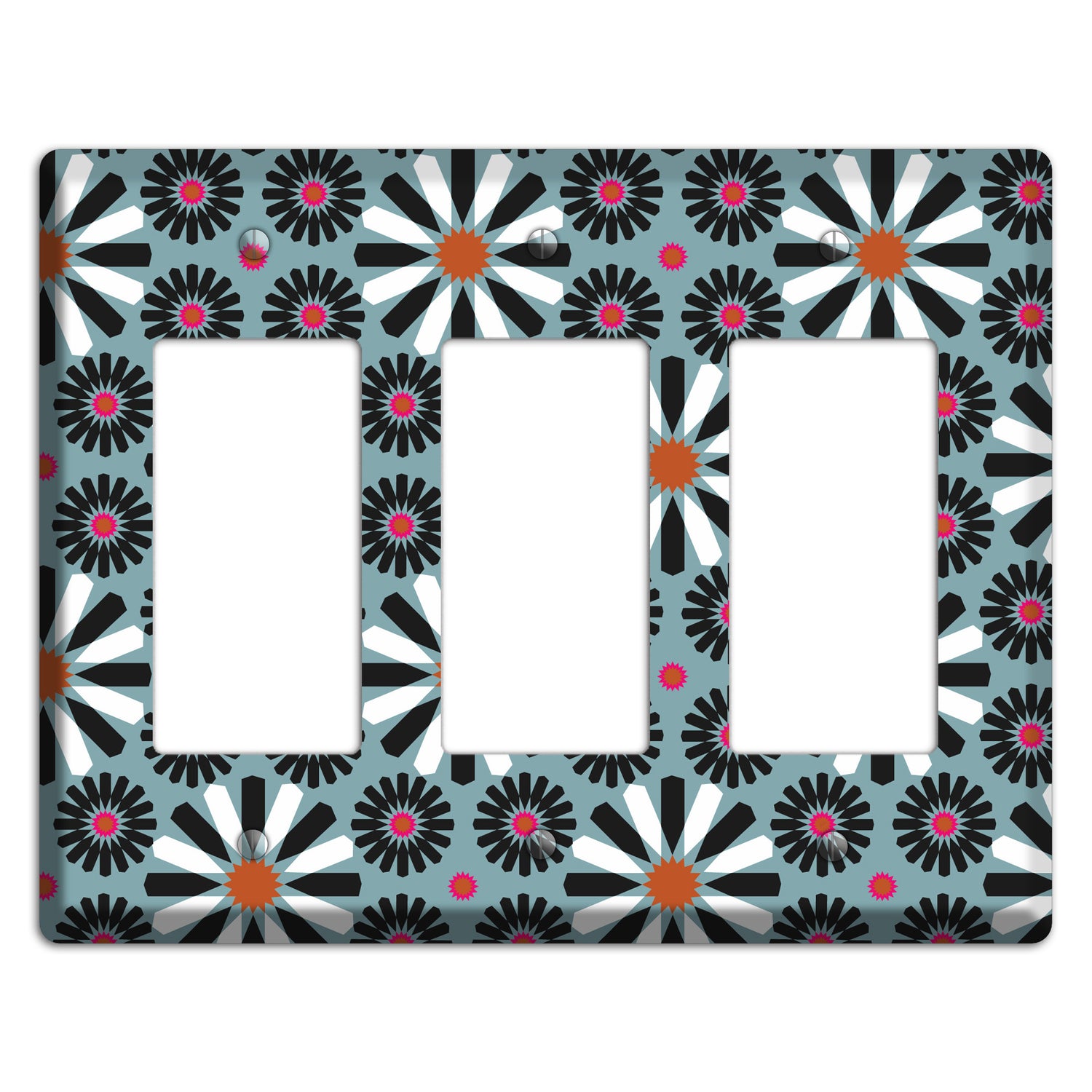 Dusty Blue with Scandinavian Floral 3 Rocker Wallplate