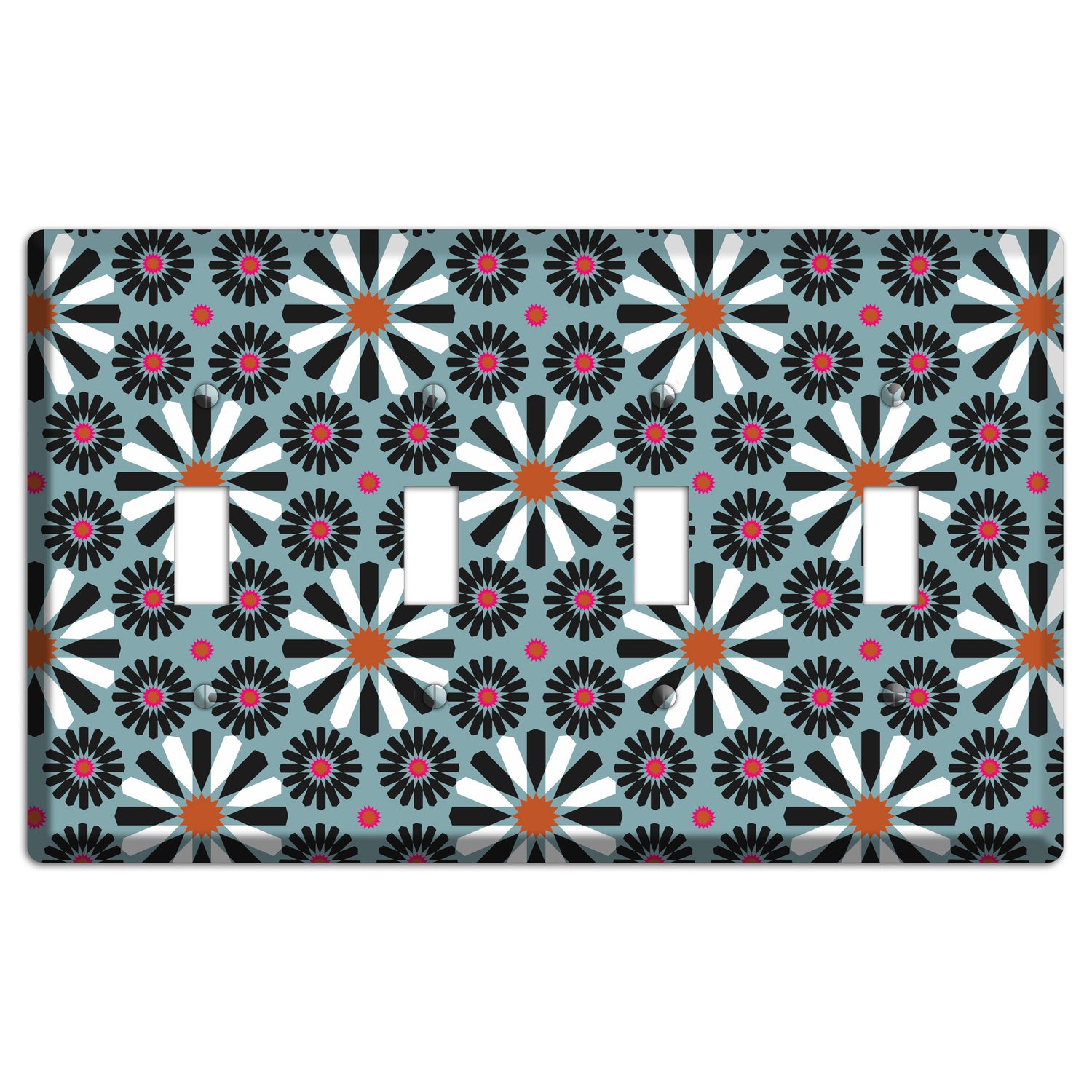 The Dusty Blue with Scandinavian Floral 4 Toggle Wallplate are very unique and cannot be found anywhere else. These USA made metal plates are highly detailed and made with some of the newest UV imaging technology available resulting in photograph quality prints on durable metal switchplates.